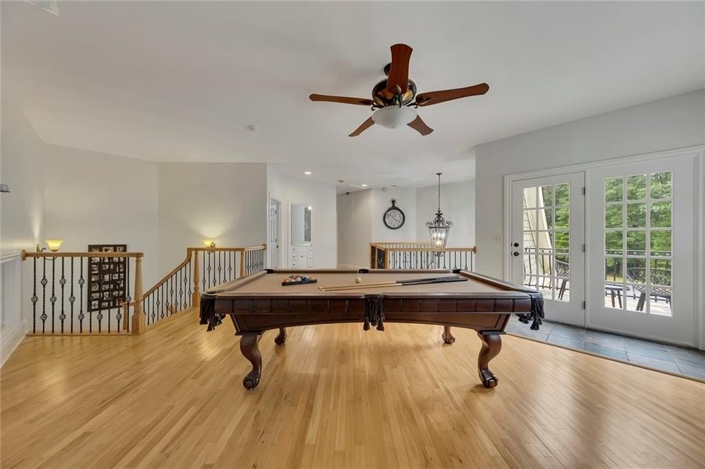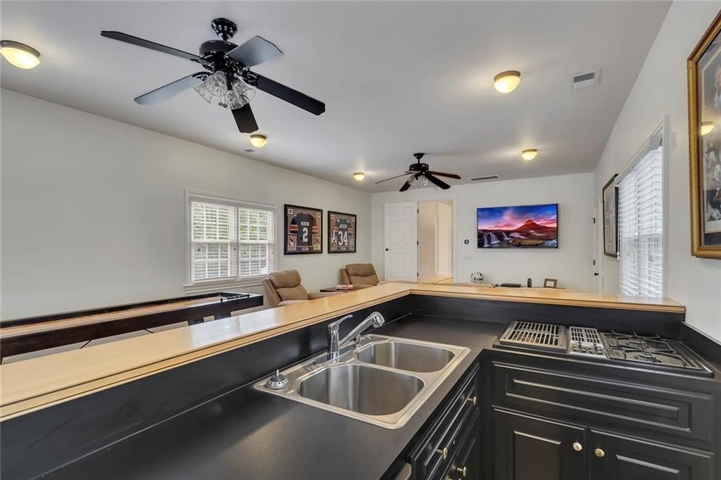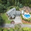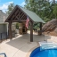 The large rec room includes a full kitchenette and opens directly to the pool area, complete with a pavilion, stone fireplace, bar, and private side yard — perfect for hosting gatherings. Additional highlights include a 3-car garage and thoughtful design throughout.