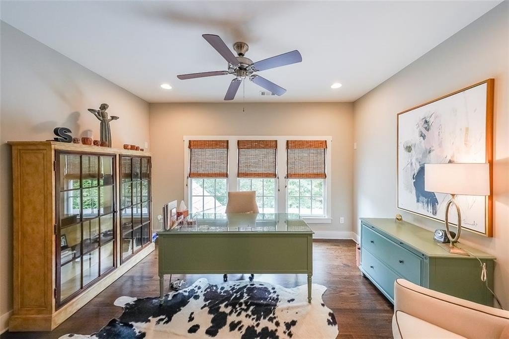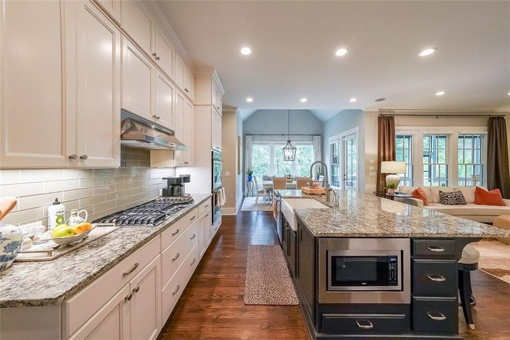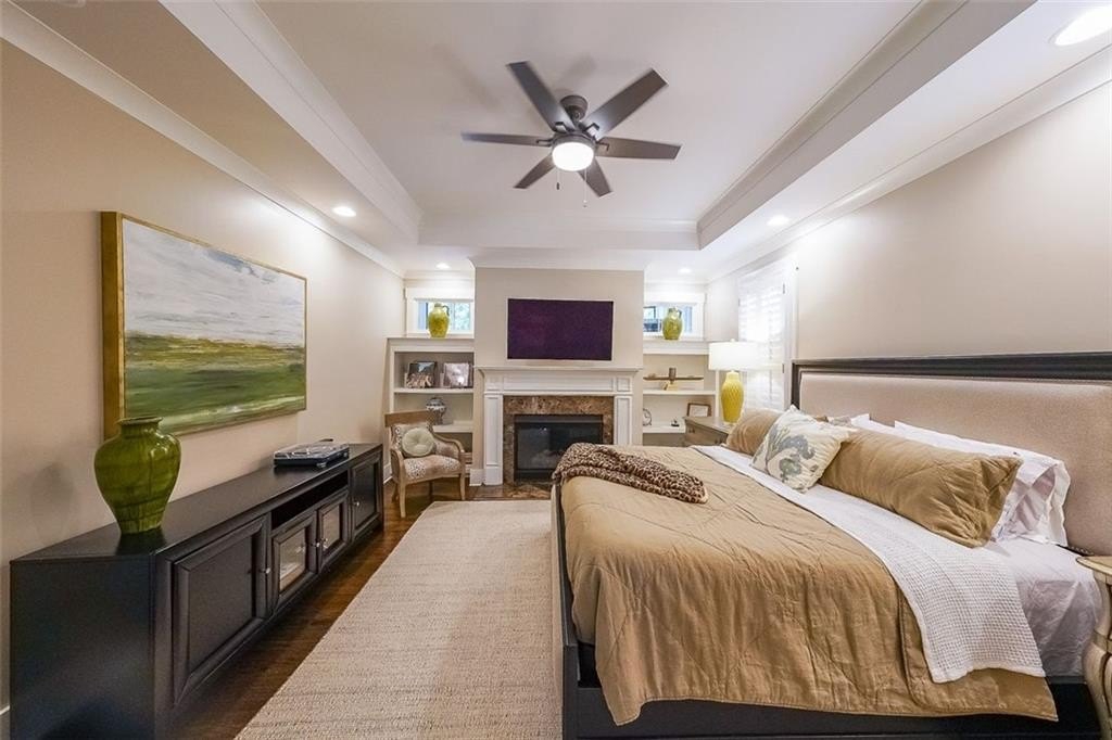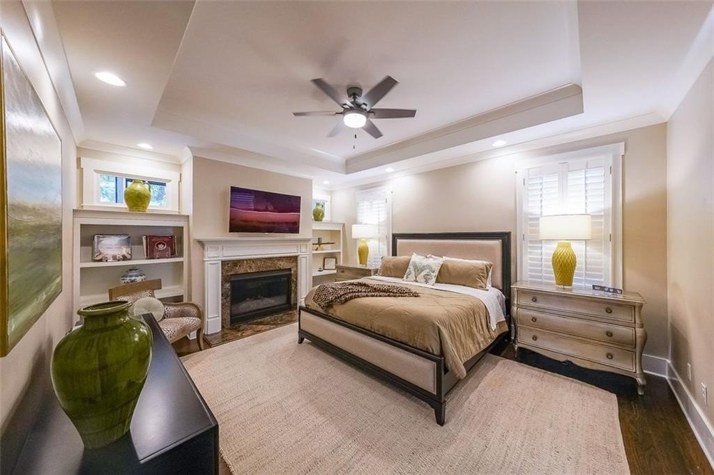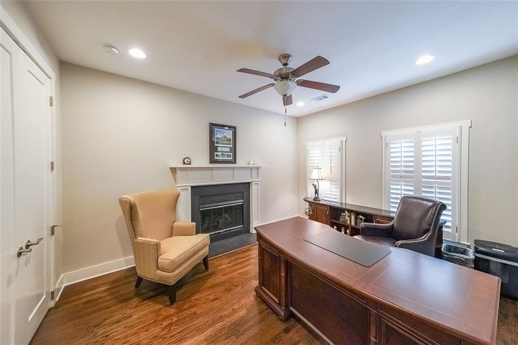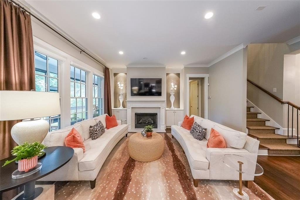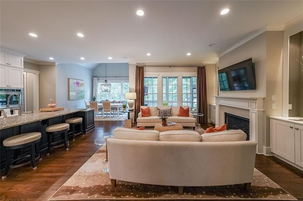 beautiful hardwood floors throughout and three inviting fireplaces that add