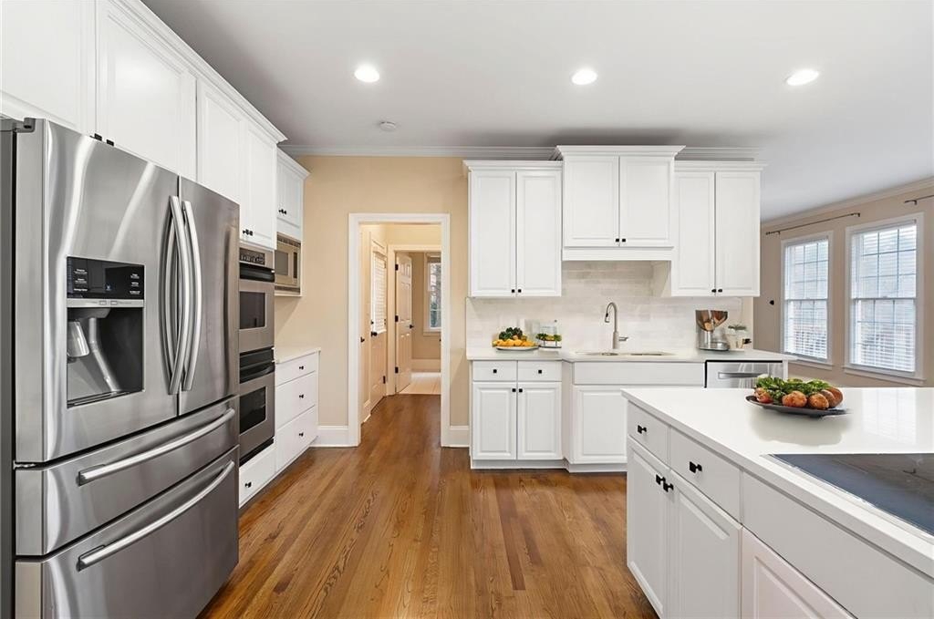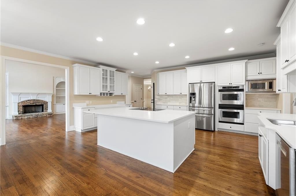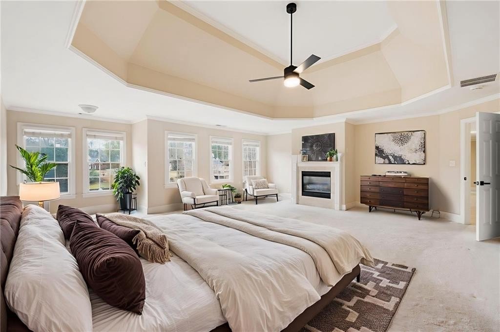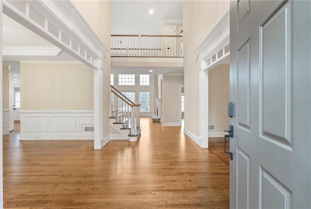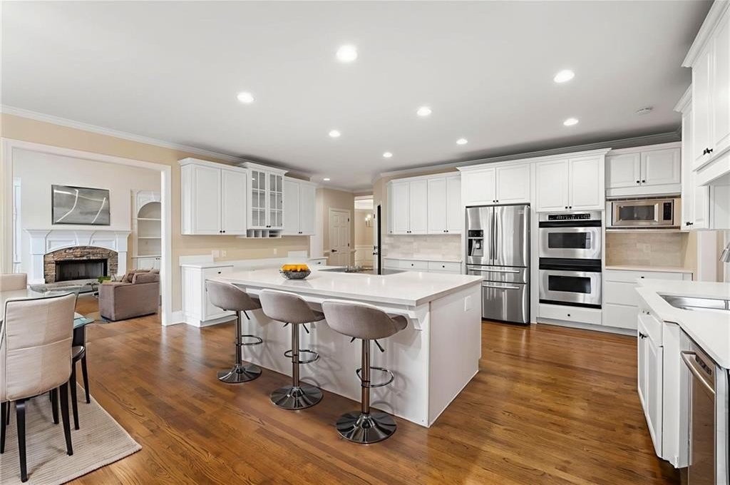 Welcome to your dream home! This RARE and exceptional property is located in the highly desired swim/tennis Glen Abbey subdivision, offering one of the BEST and LARGEST lake lots in the community. This elegant 4-sided brick home features a grand two-story foyer and an open, light-filled floor plan with 18 windows on the main level overlooking the serene lake. The expanded deck, now double its original size, provides the perfect setting for entertaining with gorgeous lake views. Inside, the home showcases refreshed and refinished flooring throughout, adding a polished touch to every room. Enjoy the spacious dining room that easily seats 12+, ideal for hosting. The NEWLY REMODELED KITCHEN features an electric cooktop, double oven, BRAND NEW QUARTZ countertops, and abundant cabinetry. A cozy family room with a fireplace sits just off the kitchen, while two additional fireplaces enhance the living room and the master bedroom. All bathrooms have been updated or fully renovated, including the luxurious master bath with quartz countertops, double vanity, separate tub, frameless shower, and a large walk-in closet. A convenient bedroom and full bath on the main level complement the four bedrooms upstairs. The finished basement includes a bedroom, full bathroom, billiard room, and flexible spaces perfect for a gym or lounge, along with generous storage. The home sits on a professionally landscaped, level cul-de-sac lot and includes a 3-car garage. Glen Abbey amenities include 8 tennis courts, a pool, playground, pavilion, and a walking trail connecting to the Big Creek Greenway. All within minutes of top schools, Avalon, Downtown Alpharetta, GA 400, and more. Don’t miss this stunning lakefront home that truly has it all!