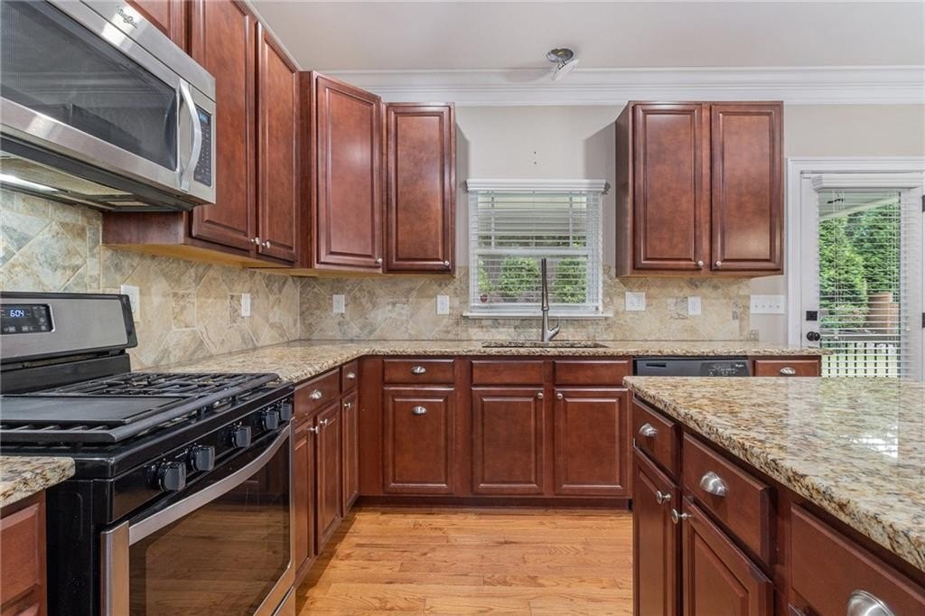 Welcome to this beautifully maintained Craftsman-style home, perfectly situated on a peaceful cul-de-sac lot. Enjoy relaxing or entertaining on both the covered front and back porches—ideal for hosting family and friends year-round! Step inside to discover an open and inviting floor plan with real hardwood floors throughout the main level. The spacious kitchen is a chef’s dream, featuring stainless steel appliances, solid surface countertops, a large island, and elegant 42-inch cabinetry. Upstairs, the oversized Primary Suite offers a private retreat complete with a cozy sitting area and wet bar. The luxurious en-suite bath includes granite countertops, a separate soaking tub, and a tiled shower. Two generously sized secondary bedrooms and a full bath complete the upper level. Located in the highly sought-after Forsyth County school district, this home offers the perfect blend of comfort, style, and convenience. Don’t miss this opportunity—schedule your showing today!