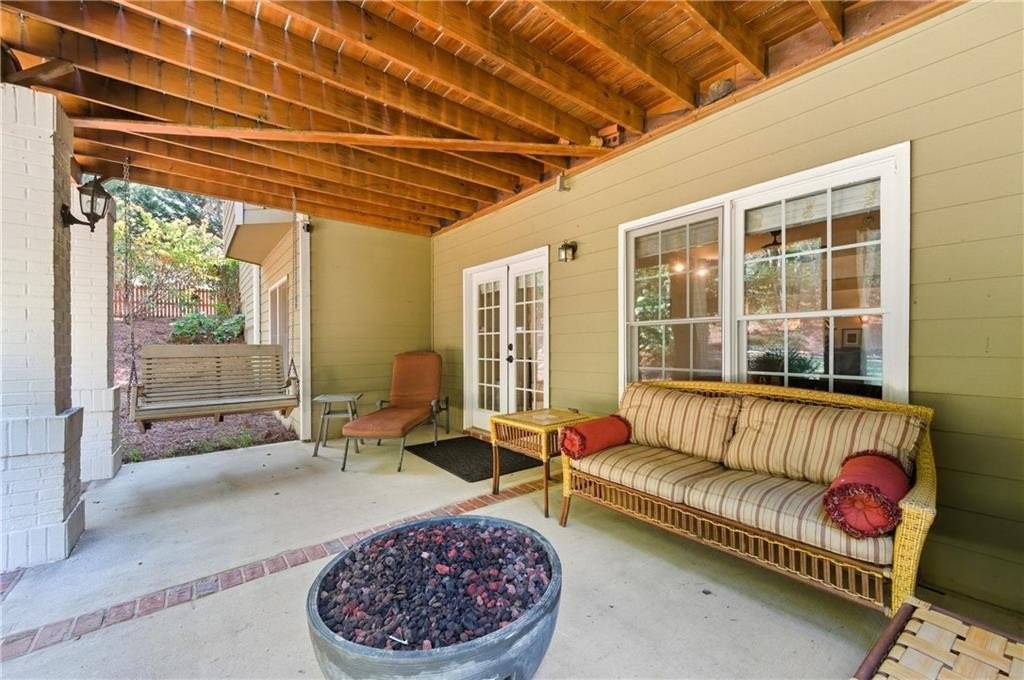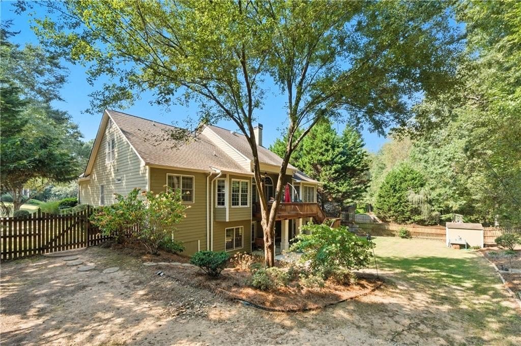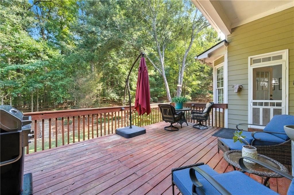 Welcome to 1214 Bonshaw Trail, redefining luxury living in Marietta. This exceptional ranch home, designed for multi-generational living, seamlessly blends timeless elegance with modern convenience, offering a lifestyle of unparalleled comfort and sophistication. From the moment you arrive, the classic rocking chair front porch invites you to linger and savor the tranquility of your surroundings. Step inside and be greeted by the warm glow of gleaming hardwood floors that guide you through an open concept masterpiece. The heart of the home is a chef's dream, featuring an updated kitchen with a high end JennAir stove. This culinary haven flows effortlessly into a sunny breakfast room, offering serene views of the lush, private backyard. The adjacent open concept living room provides an ideal setting for both intimate gatherings and grand entertaining. Retreat to the main level primary suite, a sanctuary of relaxation and refinement. Indulge in the oversized, deep soaking tub, designer granite in the walk in shower that elevates the space, and custom shelving in the large walk in closet provides a place for everything. Two additional bedrooms on the main level ensure comfort and privacy for family or guests, and completing the perfect ranch style layout. A true highlight of this home is the private upstairs teen suite, a secluded haven complete with its own ensuite bathroom, offering a perfect escape for older children or guests seeking their own space. The lower level is an entertainer's paradise, a sprawling basement designed for leisure and luxury. A billiards room sets the stage for fun, while the huge living room provides ample space for movie nights or social events. The spacious bedroom on this level features a separate sitting area and ensuite bath, making it an ideal in-law suite. A weight room and an abundance of unfinished space provide endless possibilities for customization, for a craft room to a wine cellar. Outdoor living is an art form in the retreat, with two distinct patios to enjoy the Georgia seasons. The upper deck, perfect for your morning coffee or a nightcap under the stars overlooks a beautifully landscaped, private backyard. Below, a covered patio provides a shaded oasis, offering seamless access to this enjoyable outdoor haven. The expansive, pool-sized backyard completes this dream home package, ready for you to create your own resort-like sanctuary. Beyond the walls of this magnificent home, you become part of a community with an array of exclusive amenities. Enjoy a refreshing dip in the adult pool or spend quality time with the family at the kids' play area and family pool. Stay active on the tennis and pickleball courts, or join in on community events at the large field with its pavilion. Serene walking trails wind through the neighborhood, and a stocked fishing pond offers a tranquil escape for anglers. This isn't just a home; it's a lifestyle, offering the best of both luxury and community.