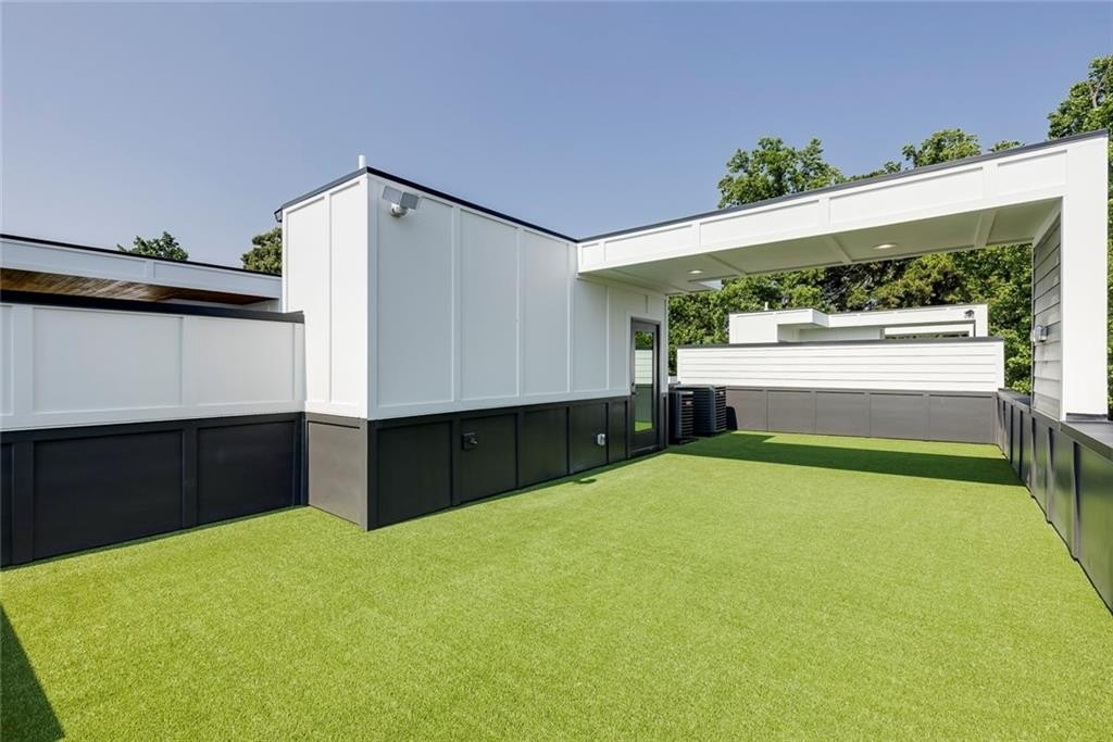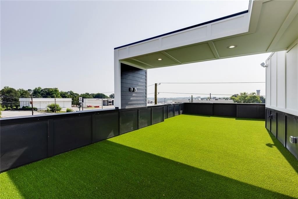 The Globemaster (Unit 5) offers 3 bedroom & 3.5 bathroom townhouse that fronts on the left flank of the complex and is also one of the more urban units. This home has three walls of windows and a gorgeous elevated living room overlooking the airport and street. Featuring a beautiful kitchen with exclusive marble countertops (you have to see it!), luxury Fulgor appliances, designer lighting, stylish tile and chic hardwood, a full private rooftop deck with lush artificial turf with views of Stone Mountain and the runway lights, and a two-car garage, it is ideal for both entertaining and relaxation.