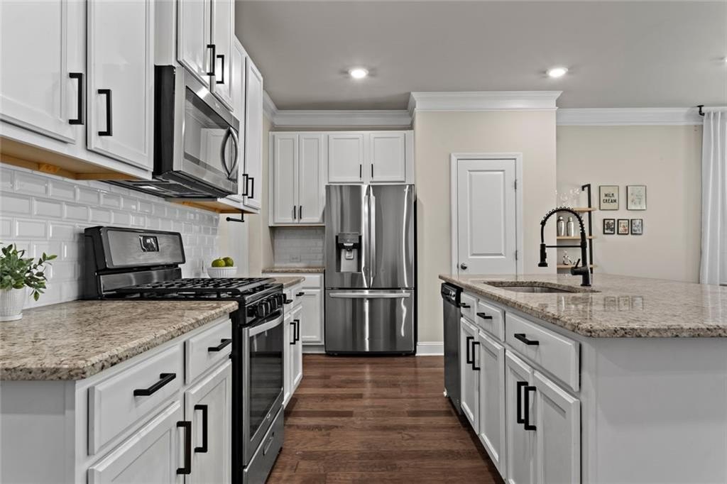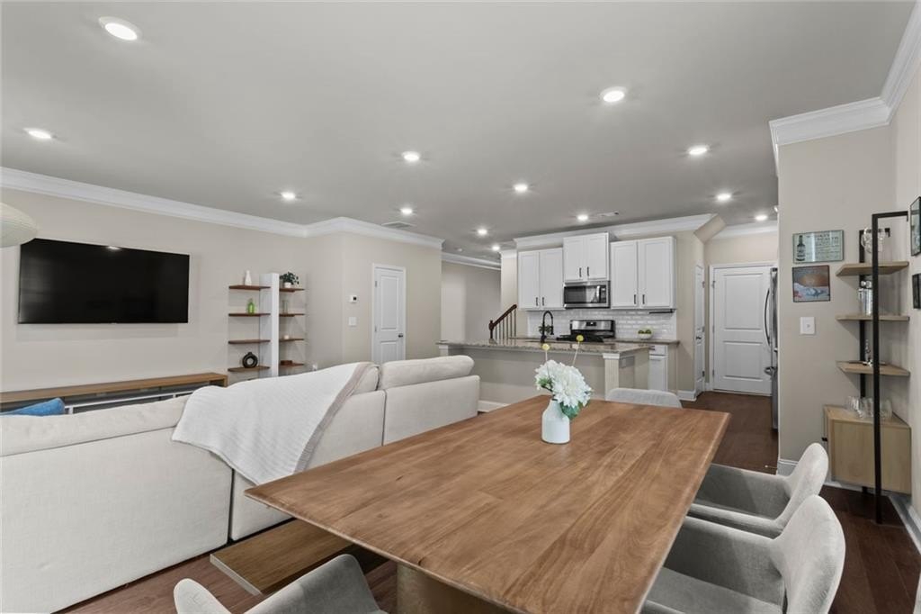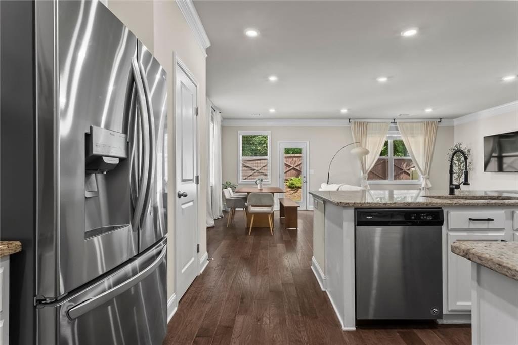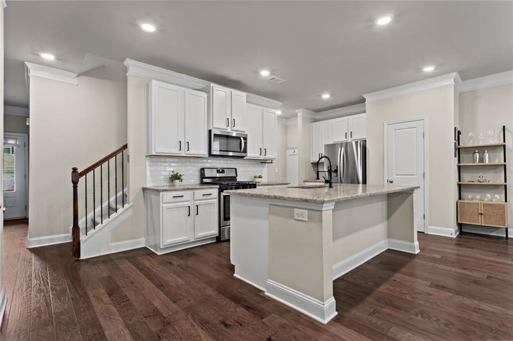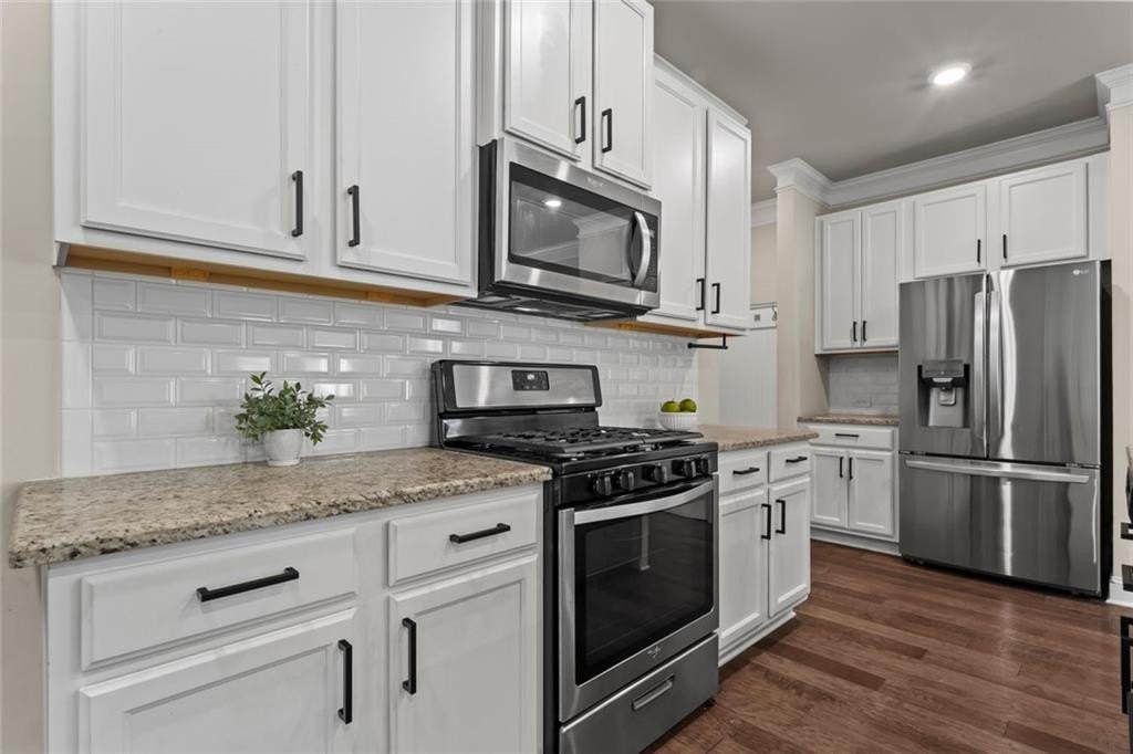 Welcome to this beautifully maintained end-unit townhome offering a perfect blend of modern comfort and stylish design. Built in 2020, this 3-bedroom, 2.5-bath home features an attached 2-car garage and numerous upgrades throughout. The entire home has been freshly painted to add an extra fresh feel. Step inside to find gleaming wood floors on the main level, an open-concept layout ideal for entertaining, and a chef’s kitchen with granite countertops, stainless steel appliances, and ample cabinet space. The bright and airy living space flows seamlessly to the private outdoor patio and green space, perfect for morning coffee or relaxing evenings. Upstairs, the luxurious owner’s suite boasts vaulted ceilings, elegant wainscoting, two spacious walk-in closets, and an oversized en-suite bath with a double vanity and modern finishes. Two additional bedrooms share a full bath, and a separate laundry room with built-in shelving adds convenience. As part of a well-maintained community, you’ll also enjoy access to amenities including a community pool with lap lanes—great for both recreation and fitness. Don't miss this opportunity to own a move-in ready home with all the features you’ve been looking for!