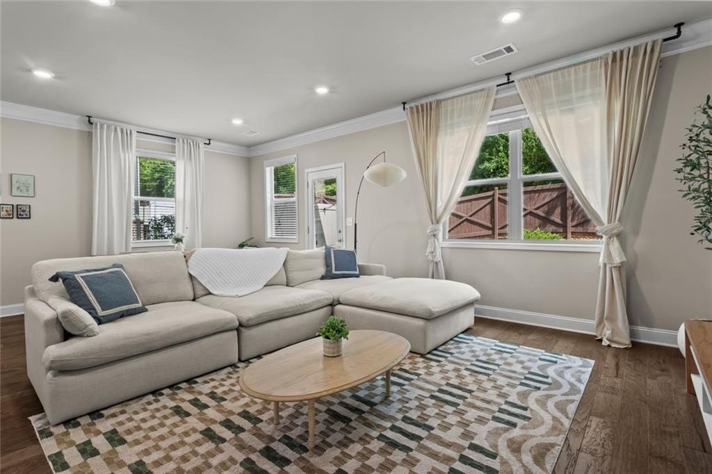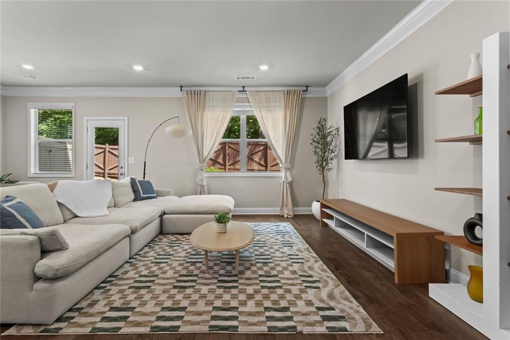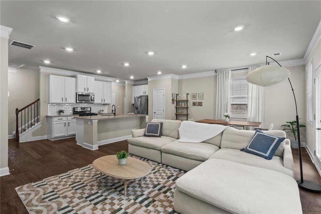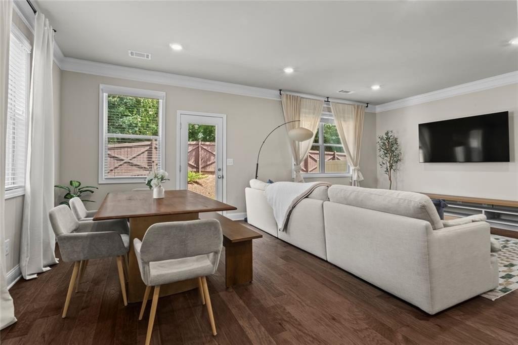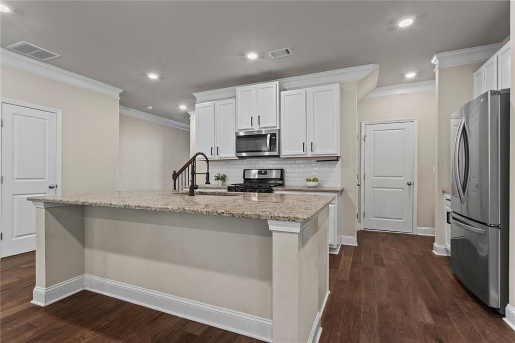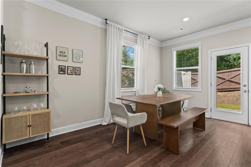 Welcome to this beautifully maintained end-unit townhome offering a perfect blend of modern comfort and stylish design. Built in 2020, this 3-bedroom, 2.5-bath home features an attached 2-car garage and numerous upgrades throughout. The entire home has been freshly painted to add an extra fresh feel. Step inside to find gleaming wood floors on the main level, an open-concept layout ideal for entertaining, and a chef’s kitchen with granite countertops, stainless steel appliances, and ample cabinet space. The bright and airy living space flows seamlessly to the private outdoor patio and green space, perfect for morning coffee or relaxing evenings. Upstairs, the luxurious owner’s suite boasts vaulted ceilings, elegant wainscoting, two spacious walk-in closets, and an oversized en-suite bath with a double vanity and modern finishes. Two additional bedrooms share a full bath, and a separate laundry room with built-in shelving adds convenience. As part of a well-maintained community, you’ll also enjoy access to amenities including a community pool with lap lanes—great for both recreation and fitness. Don't miss this opportunity to own a move-in ready home with all the features you’ve been looking for!