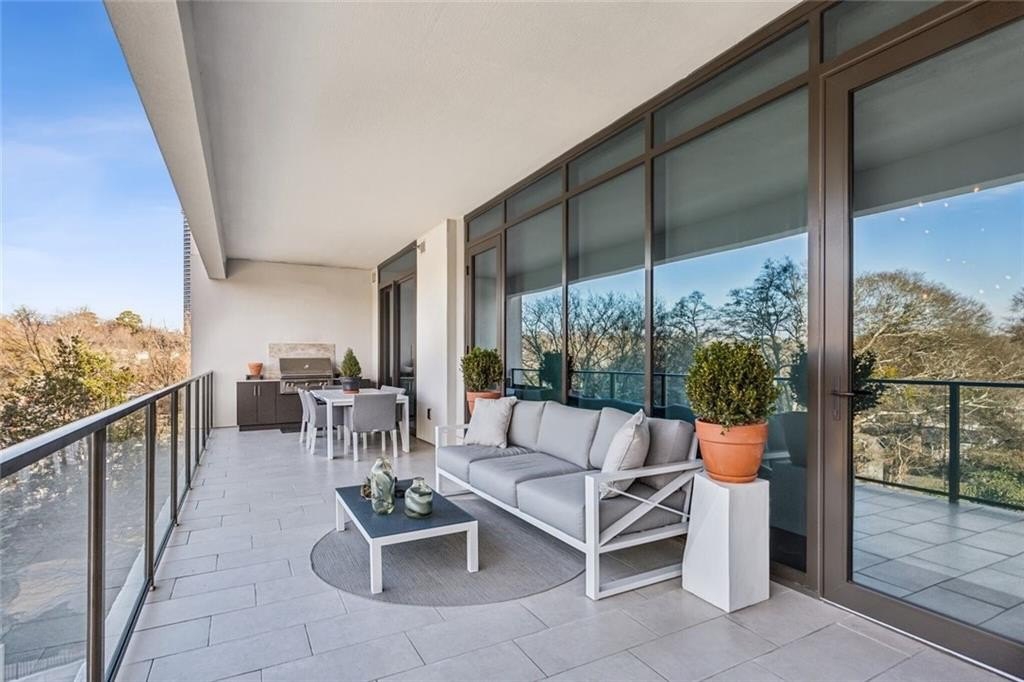 Rare opportunity for resale in the luxurious Graydon Buckhead! Spectacular west facing sunset views provide the perfect backdrop for this pristine residence. Move-in ready with gleaming hardwood floors, 10' ceilings, and handsome decor. Open plan designed for today's lifestyle with floor to ceiling windows from Living Room and Dining Room to expansive 50' private terrace complete with outdoor fireplace and Alfresco gas grill. Designed for entertaining, you'll love the setting overlooking beautiful treescape with Graydon's gorgeous salt water pool and amenity plaza. Chef's kitchen boasts rich custom cabinetry, quartz countertops, spectacular island with waterfall feature and top-of-the-line appliances including SUB ZERO, Wolf, and Asko. Inviting spacious owner's suite with access to outdoor patio and fireside seating area. You'll love the spa-like bath with soaking tub, dual marble vanities, seamless glass shower entry, and custom walk-in closets. Secondary Bedroom includes en-suite bath and access to the private patio. The flexible plan includes a den or home office as well. Additional features include bar area with SUB ZERO beverage cooler , walk-in pantry, and laundry room. The Graydon is nestled in the heart of Buckhead and offers first class amenities with 24-hour concierge 7 days a week, fitness center with state-of-the-art equipment, private spa room, sauna, jacuzzi in the plaza with poolside cabanas, and so much more, including one of the best on-site dog parks in the city! Experience the best of everything in this prime location...just a short walk to Peachtree Battle Shopping Center where you can enjoy upscale dining and shopping. Take a stroll to Duck Pond Park, a serene 2 acre lake a block away. Welcome to Graydon Buckhead! A perfect '10' priced to sell!