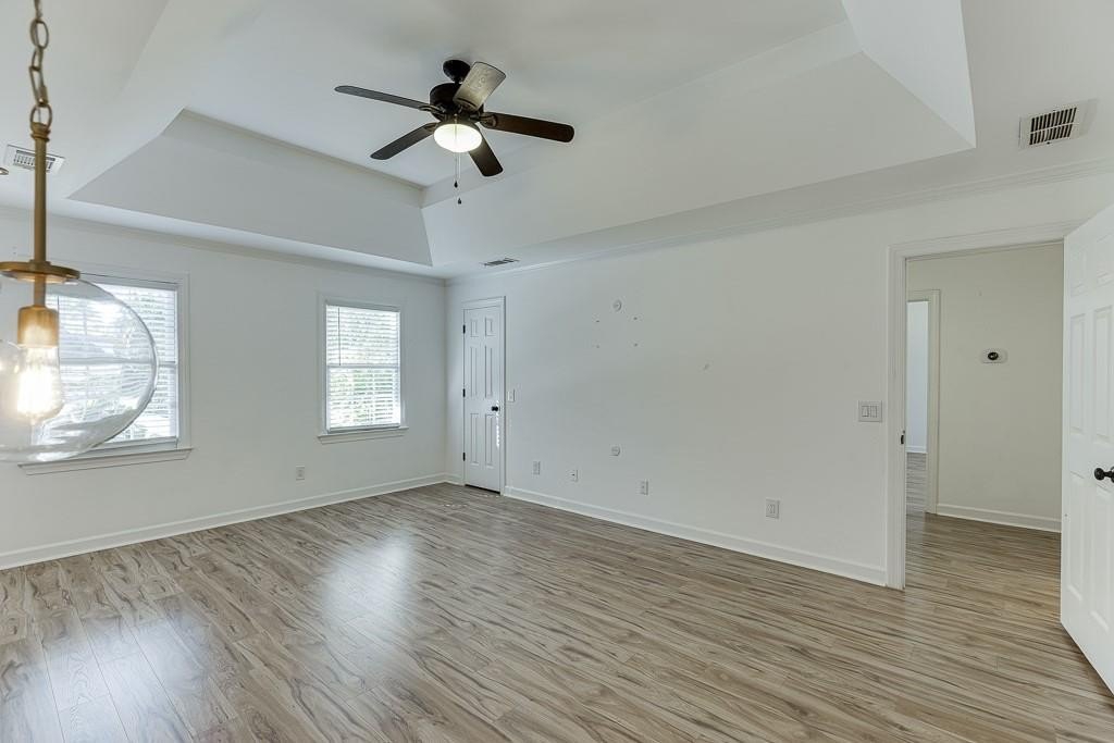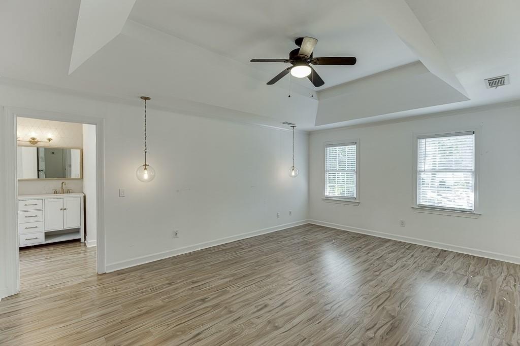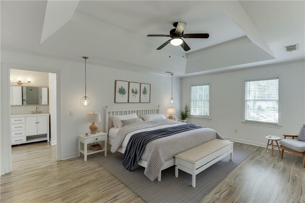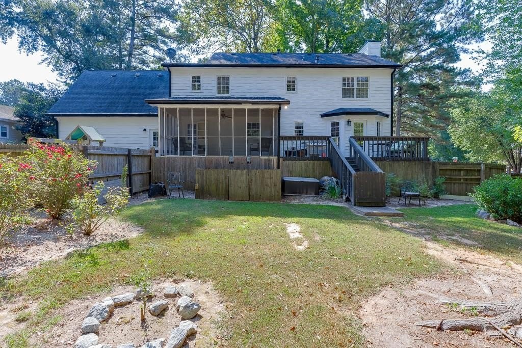 Welcome to 191 Gates Mill Drive, a charming three-story home situated on an oversized corner lot in the sought-after Gates Mill community. This beautifully maintained property offers timeless curb appeal, a flexible layout, and thoughtful upgrades throughout.  The main level features a bright, open-concept flow between the living, dining, and kitchen spaces, all connected to a large screened-in porch that overlooks a fully fenced backyard with mature trees, two fire pit areas, garden beds, and a dedicated play space.  The home is wired for a Ring doorbell, Google Home, two exterior cameras, smart smoke detectors, and three smart TVs, offering full smart-home readiness. Two Google Nest thermostats are already installed and included. You'll also find an attic exhaust fan installed in an upstairs secondary bedroom, ideal for managing extra heat or equipment in a home office setup.  The primary suite includes two full walk-in closets and a private en suite bath, offering ample storage and functionality. Downstairs, the finished basement with kitchenette presents excellent potential for multi-generational living, a private guest suite, or a home-based business, made even more practical with a separate side driveway that offers direct access to the basement level. The lower-level bedroom and adjacent storage area both feature custom closet systems for even more organized living.  Residents enjoy access to community amenities including a pool, tennis courts, playground, and more, all just minutes from local schools, parks, and everyday conveniences. With room to grow, tech-ready features, and a layout that works for a variety of lifestyles, this home is truly move-in ready.