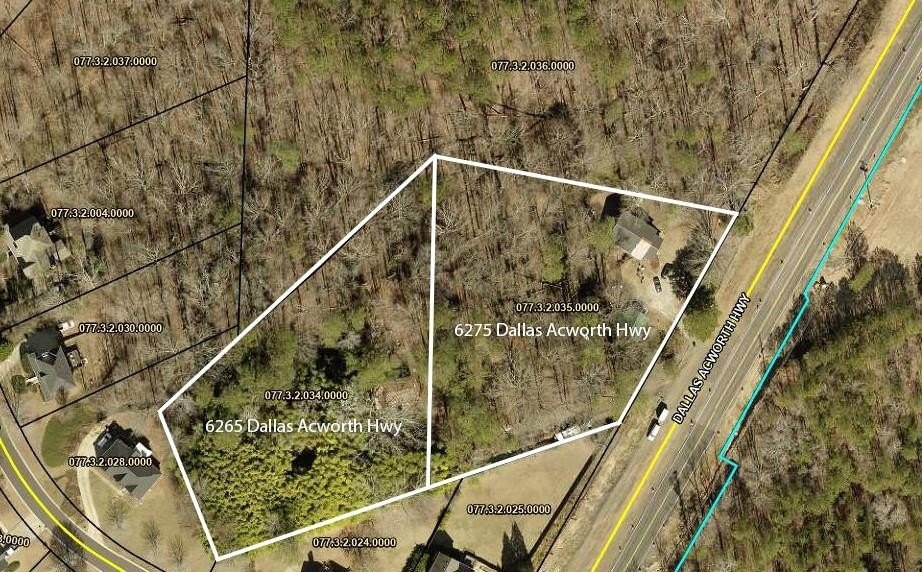 Builders, investors, and dreamers, bring your vision to over 3 acres in Paulding County! (Sellers also have an undeveloped adjacent 3.5 acre parcel they wish to sell together, 0 Dallas Acworth Hwy #1036). With 200+ feet of road frontage and R2 zoning, this property offers endless potential: build a private estate, family compound, or rehab one home and build a dream home with a beautiful woodland buffer. Just 10 minutes from downtown Dallas and 15 from Acworth, near shopping, dining, horse farms, and quiet neighborhoods. TWO adjacent, developed lots are being sold together: 1) 6275 Dallas Acworth Hwy: 1.5 acres with road frontage, a rehab-ready house, detached garage, storage shed, and finished daylight basement. 2) 6265 Dallas Acworth Hwy: 1.58 acres with private drive and older teardowns. Public water and electric utilities are in place. All parcels and structures sold AS-IS, WHERE-IS. Buyer responsible for survey, subdivision, and perc testing. Utilities have been turned off. No commercial or industrial use allowed under the current county plan. DO NOT WALK THE PROPERTY WITHOUT AN APPROVED APPOINTMENT. All visitors must sign and return GAR Form F846 to listing agent for access.