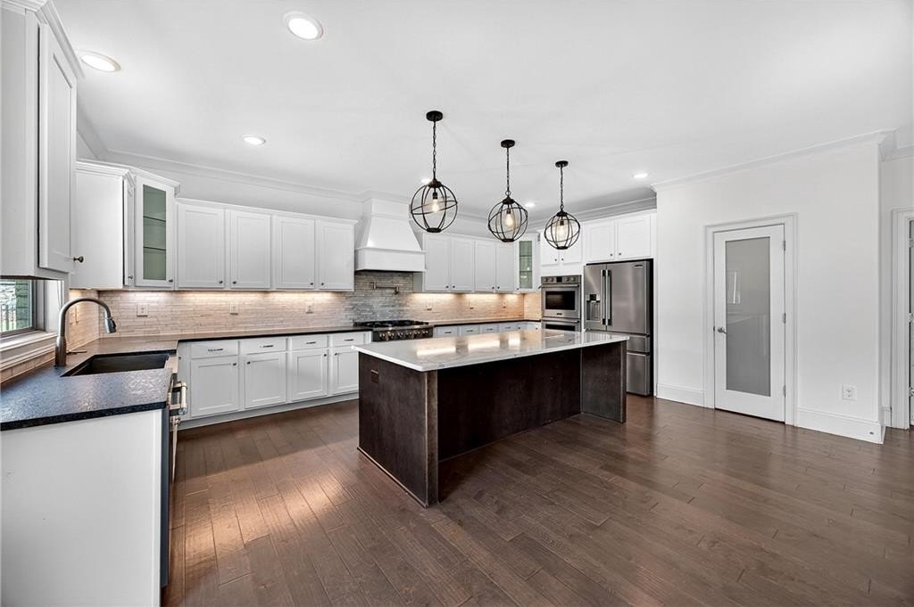 The chef's kitchen boasts a premium Thor range, double oven, and a spacious center island. The owner's suite is a private sanctuary of unparalleled luxury. It features a custom-designed walk-in closet, providing a boutique-like experience for your wardrobe, and a spa-like en-suite bathroom that offers a serene escape. Four of the secondary bedrooms are private retreats, complete with their own en-suite bathrooms.