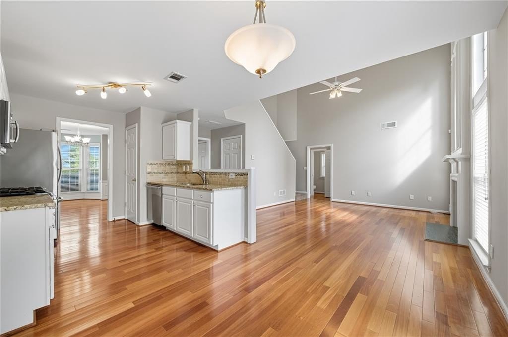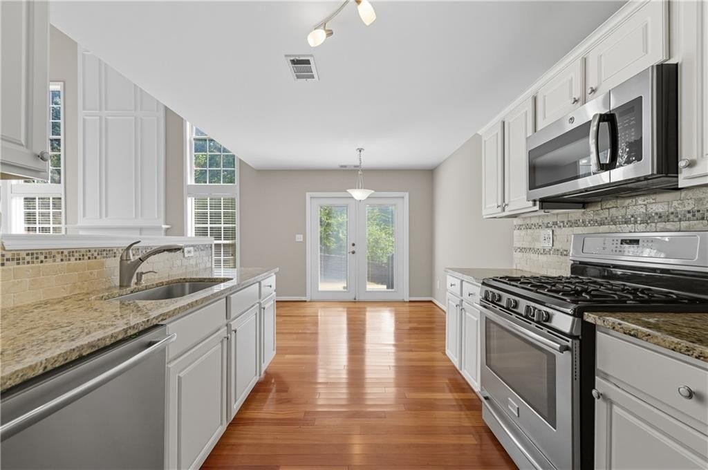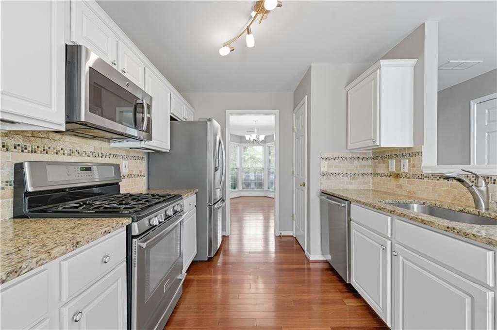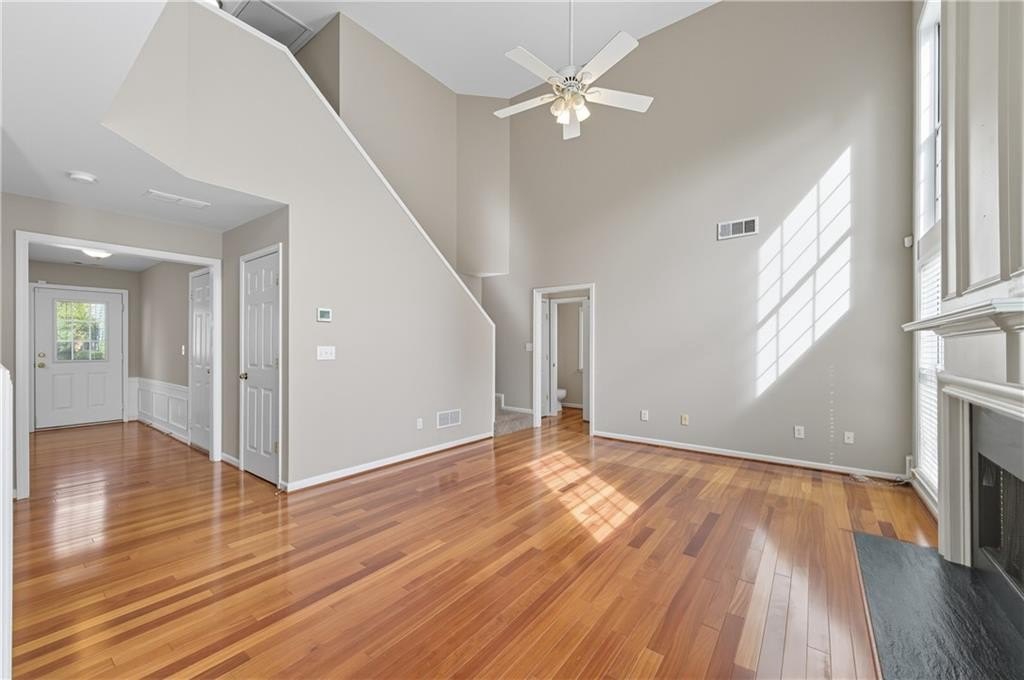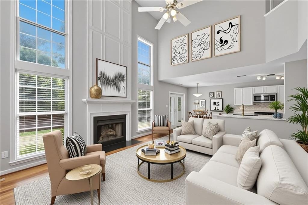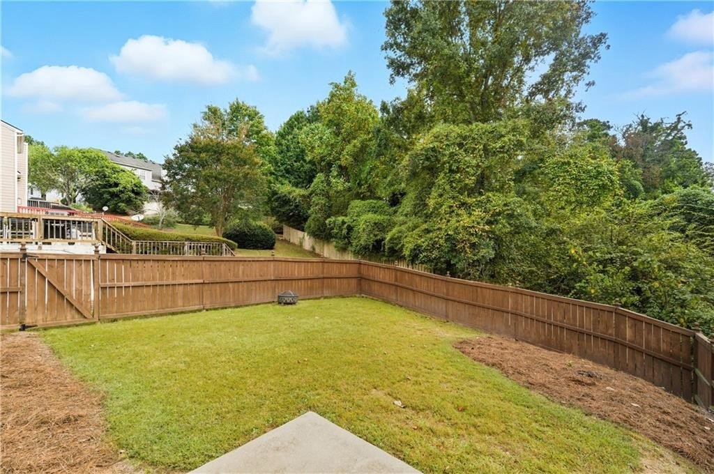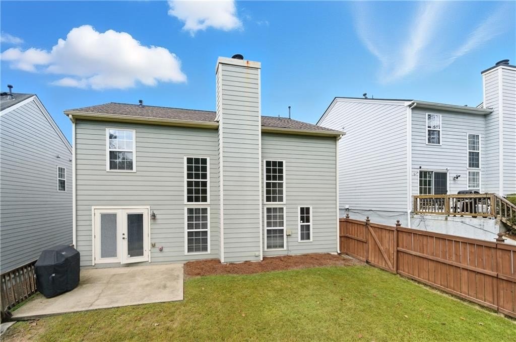 Move in ready 3-bedroom, 2.5-bath home in the sought-after Park at Vinings community, offering a perfect mix of space, comfort, and convenience. The bright two-story layout features defined living and dining areas with soaring ceilings and a cozy fireplace that creates a welcoming focal point. The kitchen boasts crisp white cabinetry, stone countertops, and a sunny breakfast nook with views of the private fenced backyard and patio—ideal for relaxing mornings or evening entertaining. Upstairs, the expansive primary suite includes a walk-in closet and a spa-like bath with dual vanities and a soaking tub. A 2-car garage, low-maintenance lot, and access to the neighborhood pool add to the appeal. Located just 20 minutes from Downtown Atlanta, this home provides easy access to top dining, shopping, and entertainment while nestled in a peaceful, well-maintained community. This low HOA fee that covers water, sanitation services, and lawn maintenance. An abundance of retail shops, restaurants are only a few minutes away.