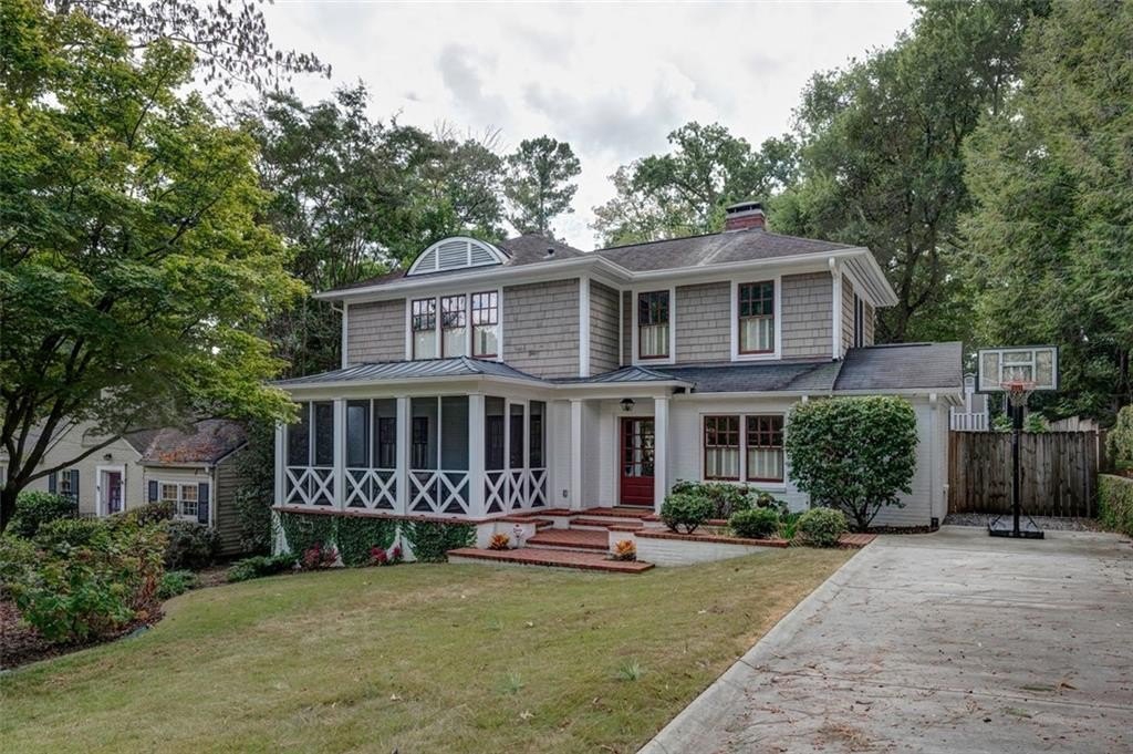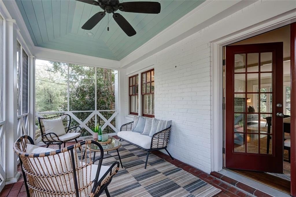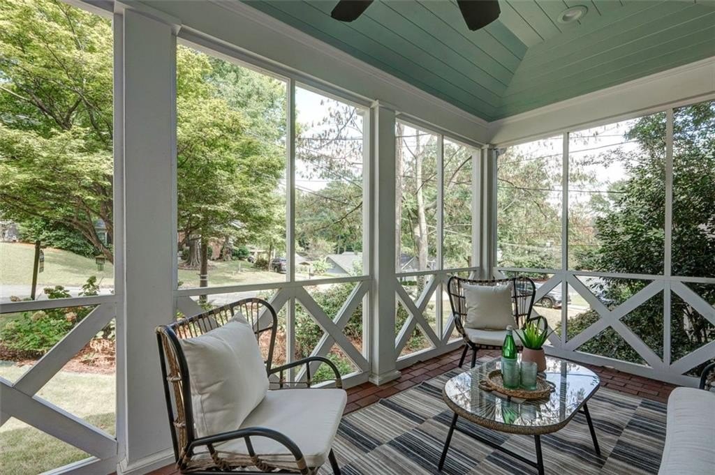 Additional highlights include a modern fireplace with gas logs, a walk-in pantry, a screened front porch, a rear deck, and a fenced backyard for private outdoor enjoyment.
