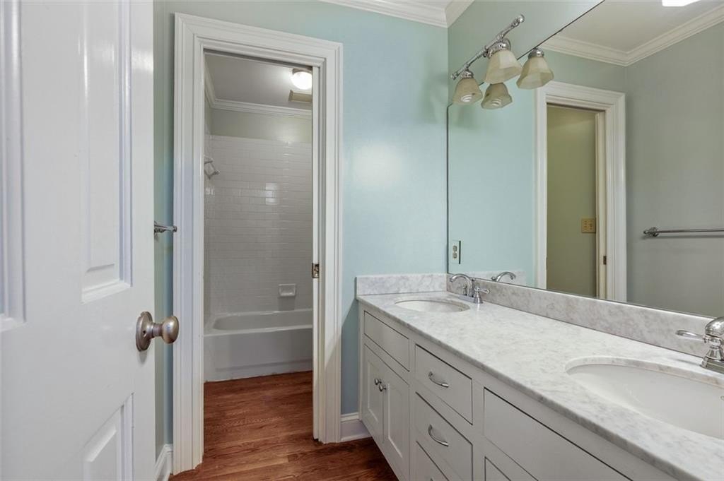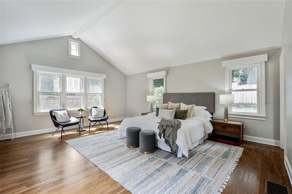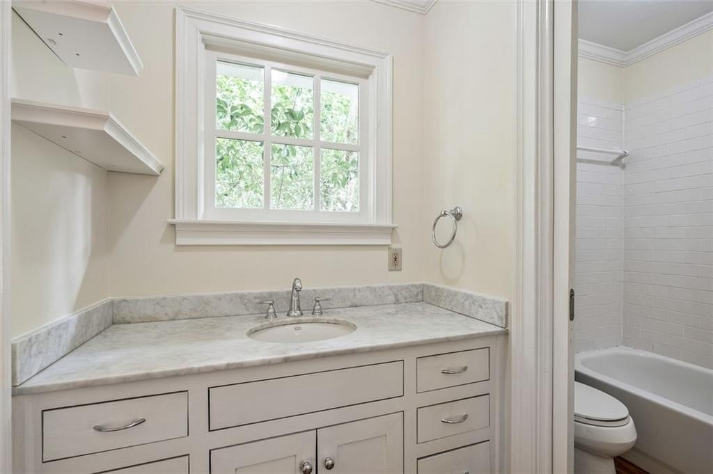 The main-level primary suite offers comfort and convenience, while upstairs features a spacious bedroom that lives like a second primary suite, plus two additional bedrooms. All bathrooms include elegant touches like marble vanity countertops.