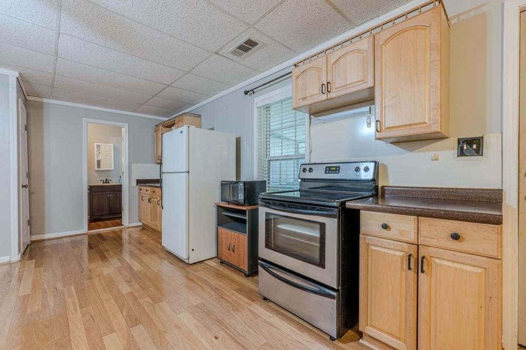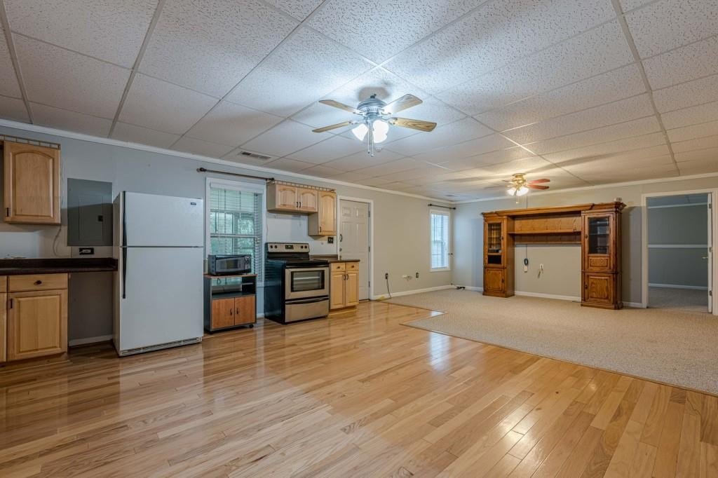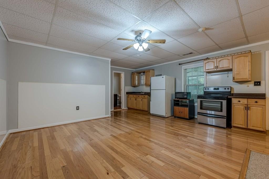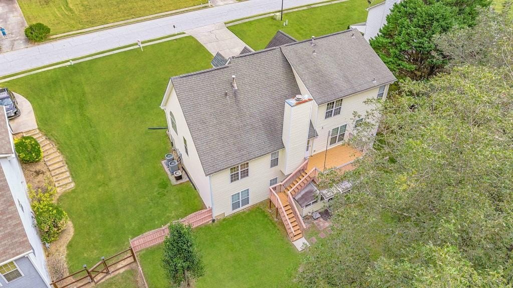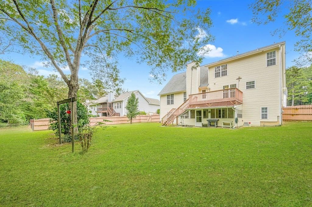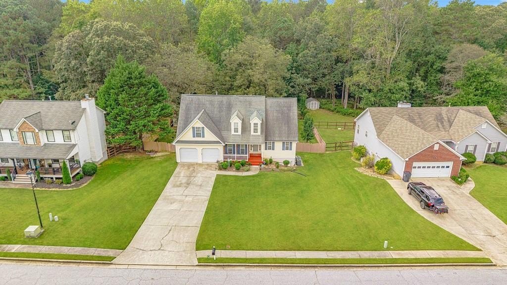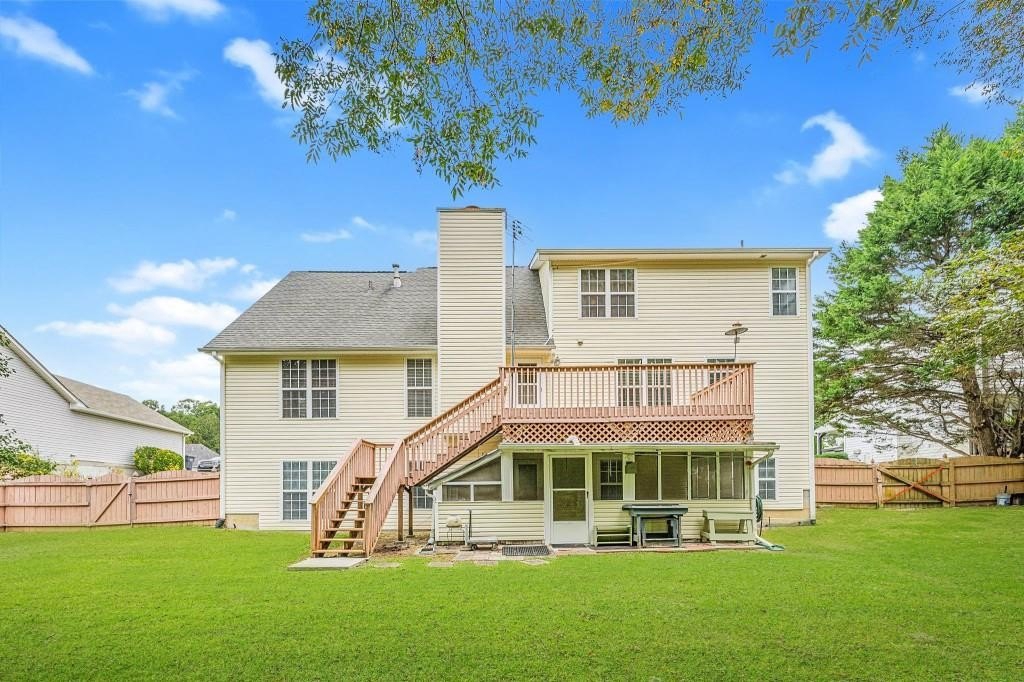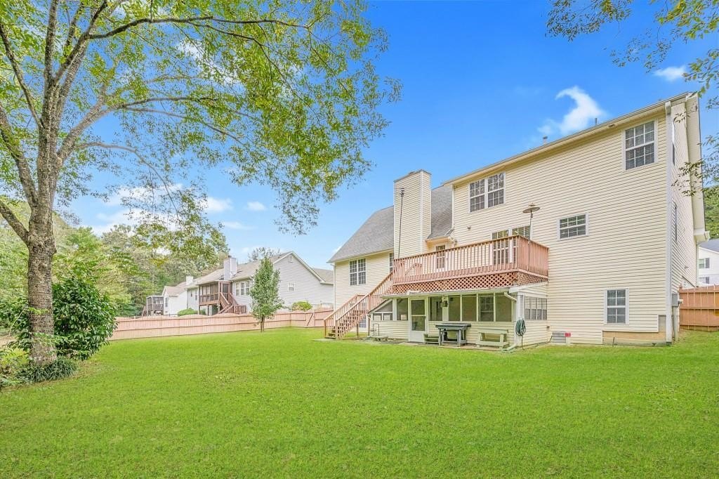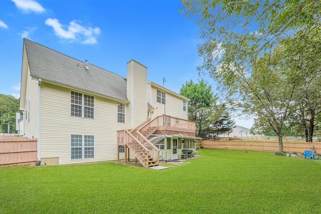 If you need a multigenerational home, this is what you have been looking for. NO HOA in this community to worry about. The main level of the house is all hardwood floors. The primary bedroom is on the main level, the bathroom has double vanities, a separate shower with upgraded tile and frameless door, garden tub, and beautiful plantation shutters. The formal dining room, family room, and foyer have high, soaring ceilings. You will love the extra-large laundry room with plenty of cabinets for storage. The washer and dryer remain with the home. The kitchen features stained custom cabinets, and the refrigerator remains. Upstairs are 3 additional bedrooms and 1 bath. Half bath on the main level. The finished basement has a full apartment with a kitchen, bedroom, bathroom, family room, sunroom, office, and storage area. There is a large deck over the sunroom. The private backyard is fenced with a garden area and a storage building. Behind the main fence, there is more yard and a second outbuilding. Easy maintenance vinyl siding. 2 septic tanks; they added the second one when the basement was finished. All appliances in both upstairs and basement kitchens remain with the home. Located in the Lovin, McConnell & Archer School districts. Conveniently located close to the Tribble Mill Park, downtown Grayson, downtown Lawrenceville, restaurants, and multiple grocery stores.