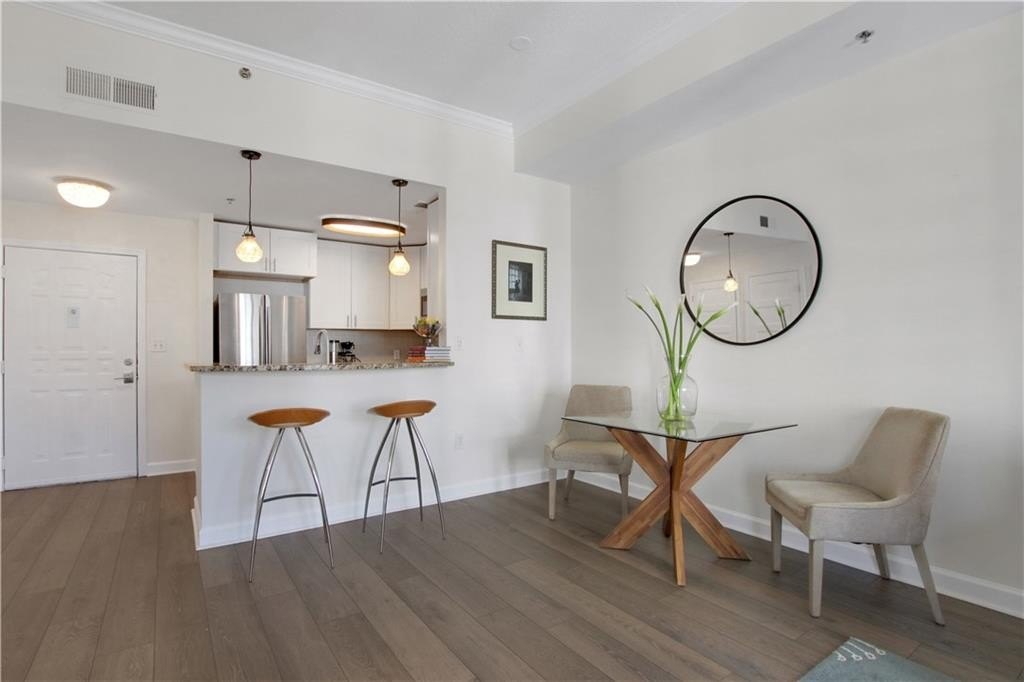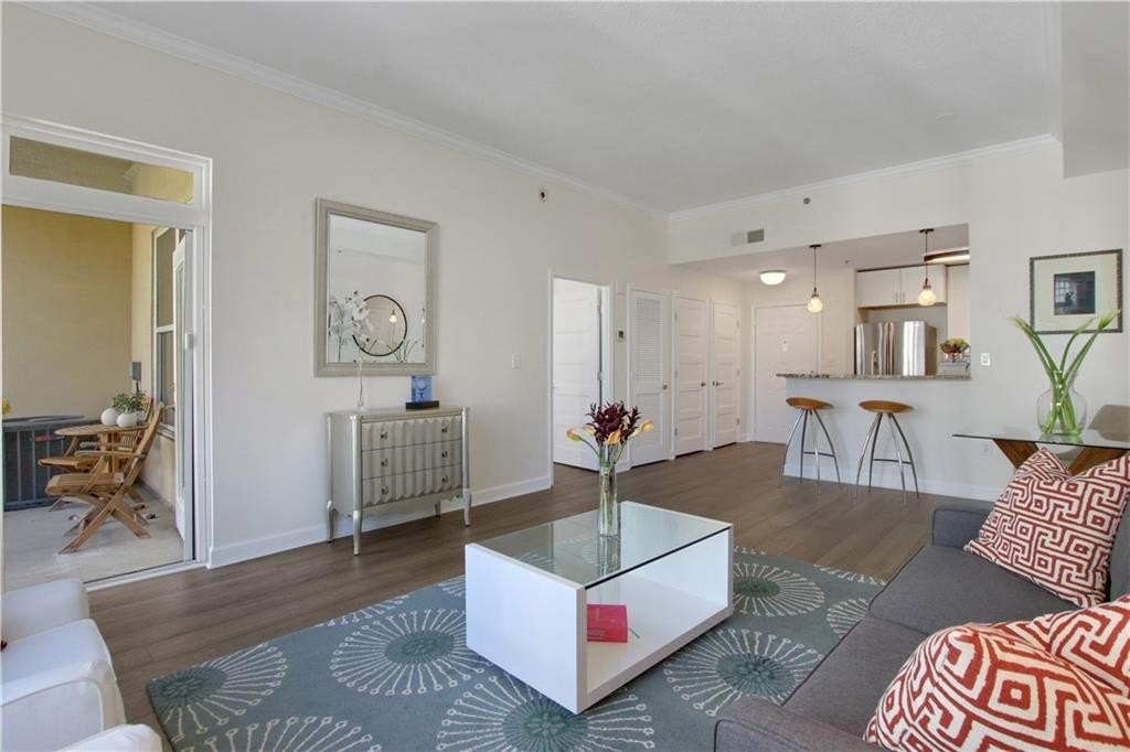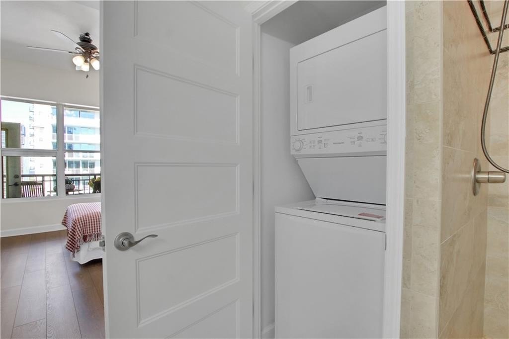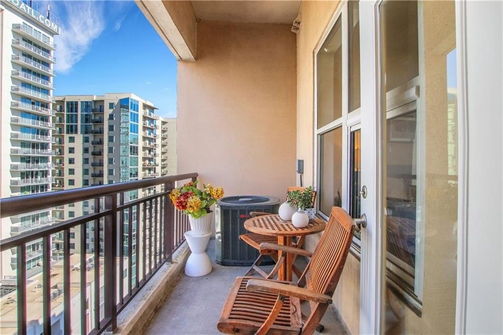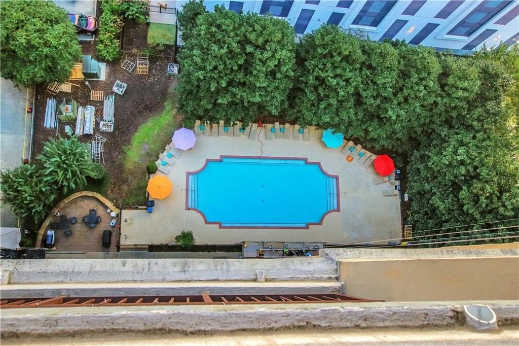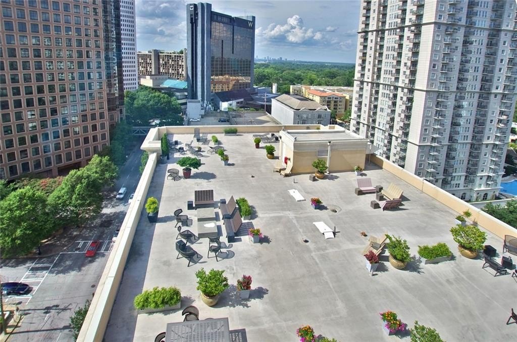 Penthouse Living and Northern Views - Sophisticated Urban Oasis in the Heart of Midtown! Beautifully Updated One Bedroom on the Top Floor with High Ceiling and an Open Concept Floor Plan. Well-Equipped Kitchen with Sleek White Cabinets, SS Appliances and Granite Counter and Breakfast Bar. Remodel Bathroom including a Modern Glassed Shower with Granite and Ceramic Tiles. New LVT Flooring and Paint Throughout and newer Stackable Washer/Dryer. Private and Covered North Facing Walk-Out Patio Overlooking Midtown and Beyond. 1 Deeded Covered Parking Space and Additional Storage Cage - both on LT Level Located Close to Elevators. Quality Amenities including 24-hour Concierge with On-Site Management. Community Features Amazing Amenities Including a Panoramic Rooftop Terrace, Outdoor Pool, Grilling Area, Club Room, Dog Walk, Google Fiber, and more. Building Has a High-End Fitness Center with Cardio Room, Weight/Machine Room, Yoga/Boxing Studio, Saunas, and Unique Indoor Heated Lap Pool. One Bedroom Guest Suite with Dedicated Parking Spot. Full-Time Onsite Management and 24-hour Concierge Service. Just Steps Away from Piedmont Park, the Woodruff Art Center, Colony Square, Close to Marta Stations, and All of the Dining and Entertainment Options Midtown Has to Offer!