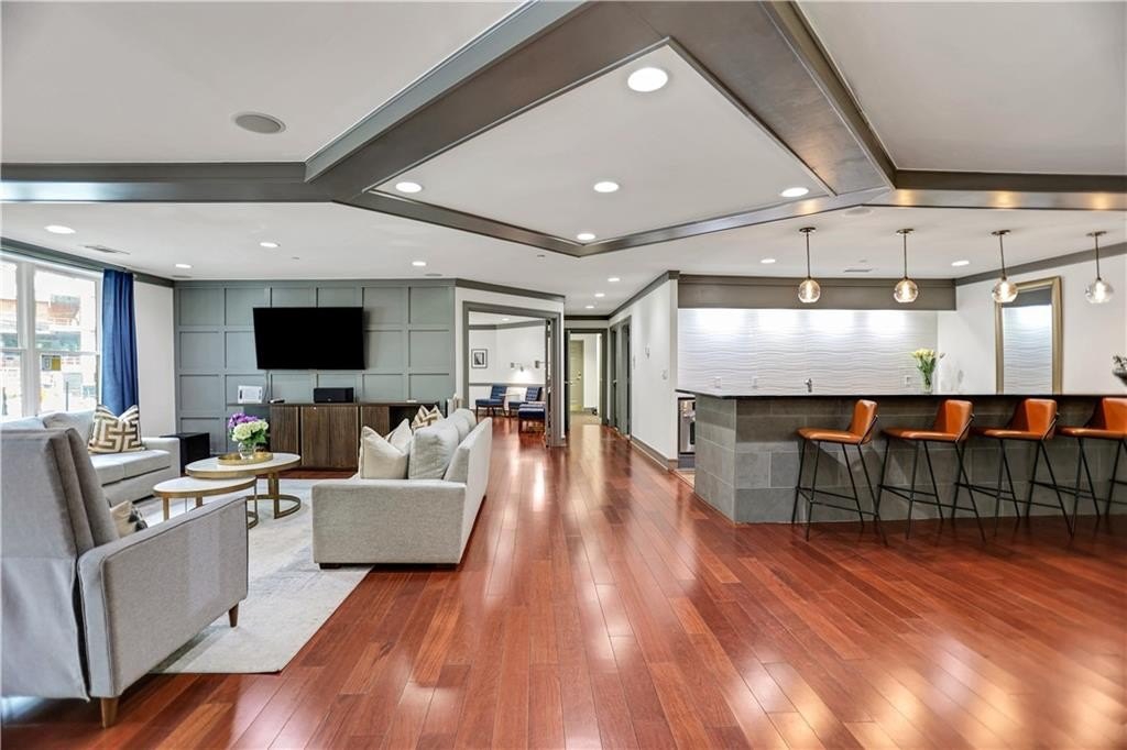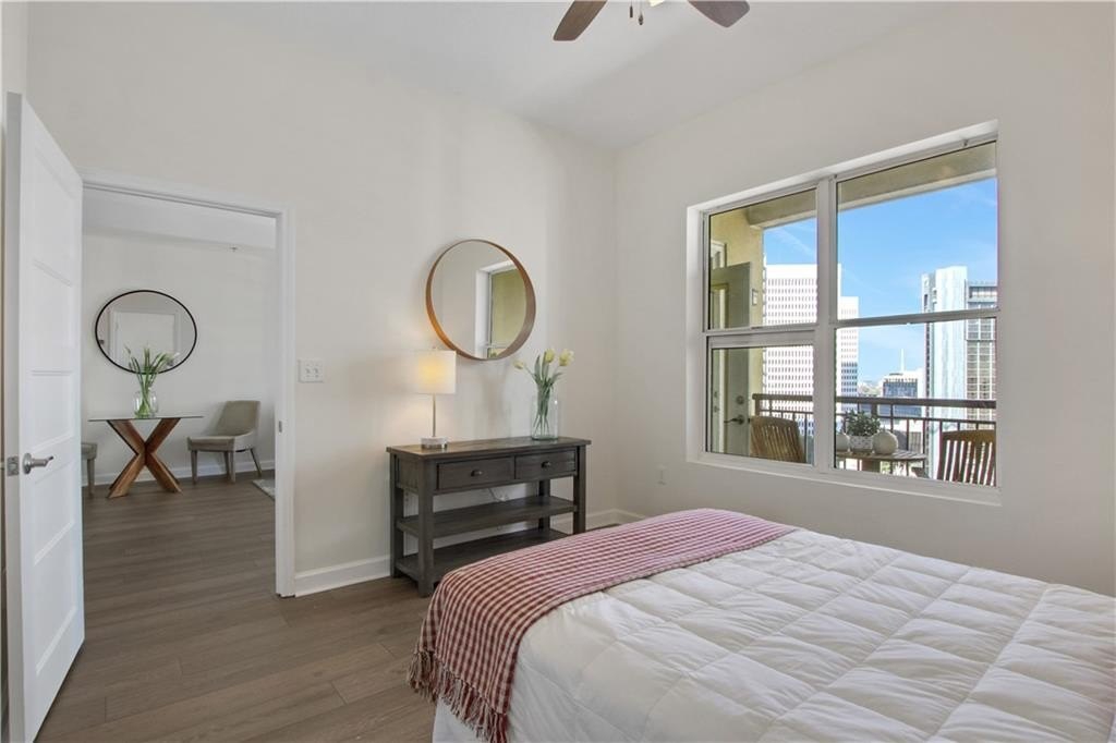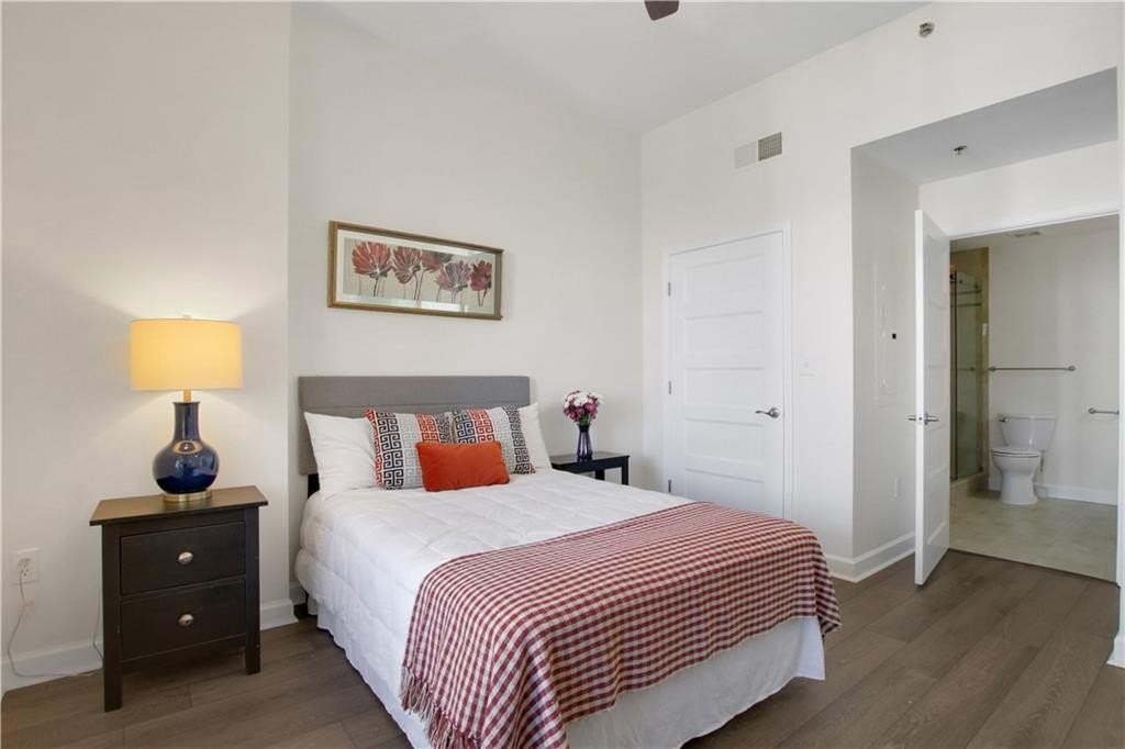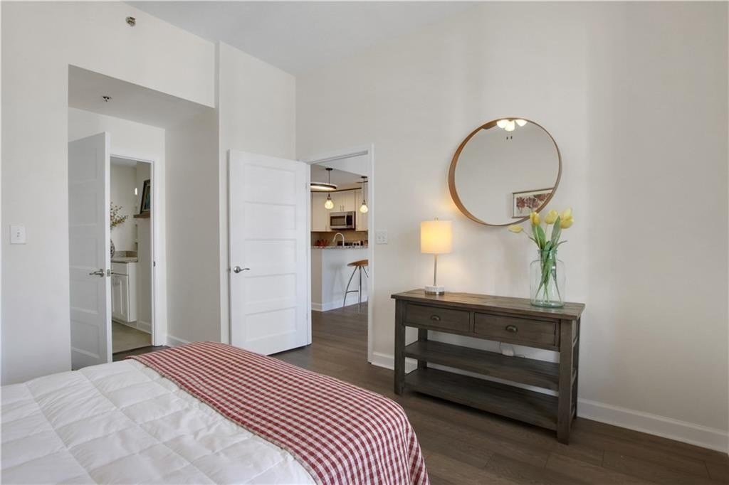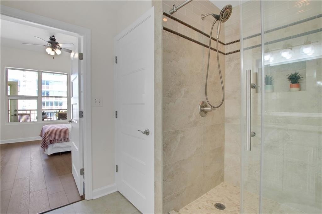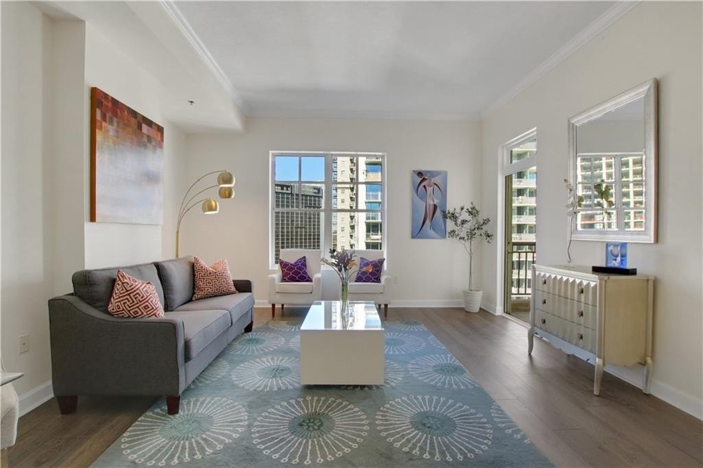 Penthouse Living and Northern Views - Sophisticated Urban Oasis in the Heart of Midtown! Beautifully Updated One Bedroom on the Top Floor with High Ceiling and an Open Concept Floor Plan. Well-Equipped Kitchen with Sleek White Cabinets, SS Appliances and Granite Counter and Breakfast Bar. Remodel Bathroom including a Modern Glassed Shower with Granite and Ceramic Tiles. New LVT Flooring and Paint Throughout and newer Stackable Washer/Dryer. Private and Covered North Facing Walk-Out Patio Overlooking Midtown and Beyond. 1 Deeded Covered Parking Space and Additional Storage Cage - both on LT Level Located Close to Elevators. Quality Amenities including 24-hour Concierge with On-Site Management. Community Features Amazing Amenities Including a Panoramic Rooftop Terrace, Outdoor Pool, Grilling Area, Club Room, Dog Walk, Google Fiber, and more. Building Has a High-End Fitness Center with Cardio Room, Weight/Machine Room, Yoga/Boxing Studio, Saunas, and Unique Indoor Heated Lap Pool. One Bedroom Guest Suite with Dedicated Parking Spot. Full-Time Onsite Management and 24-hour Concierge Service. Just Steps Away from Piedmont Park, the Woodruff Art Center, Colony Square, Close to Marta Stations, and All of the Dining and Entertainment Options Midtown Has to Offer!