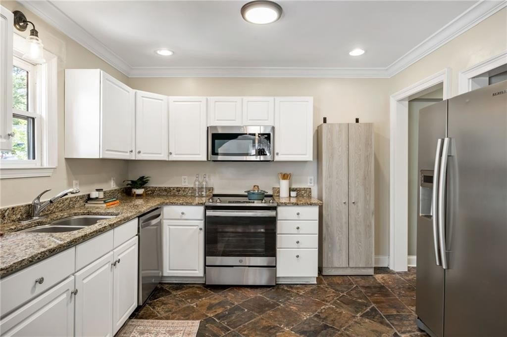 Fall in love with this gorgeous 1930's home featuring historic details, modern updates, and an unbeatable location. This turnkey gem combines classic Atlanta charm with thoughtful modern updates, in one of the best locations in town. Beautifully fenced front yard and rocking chair front porch enhance the privacy and curb appeal of this well-maintained 1930s home. Enter the front door to find a flowing floorplan with original heart of pine and oak hardwood flooring, 2 original fireplaces, and elegant arched doorways. Enjoy comfortable everyday living with visibility from kitchen to living room, while enjoying some separation of spaces. The main level also holds two bedrooms that share an updated bathroom, plus a spacious laundry room for added convenience. Upstairs, escape to your private retreat in the oversized primary suite. This luxurious space includes a spa-like bathroom with jetted tub, separate stand-up shower, water closet, and double vanity. Extra closet space ensures you'll never run out of room for your wardrobe. Step out onto your private deck overlooking the peaceful, private fenced backyard below. Speaking of the backyard - it's an entertainer's paradise. The large grilling deck and covered patio create multiple outdoor living spaces, while the metal gate provides secure parking for two vehicles. The fully fenced yard offers complete privacy and security. The location is incredible - you're perfectly positioned near the eastside Beltline trail with easy access to Atlanta's best shopping, dining, and top-rated schools. This is Atlanta living at its finest!