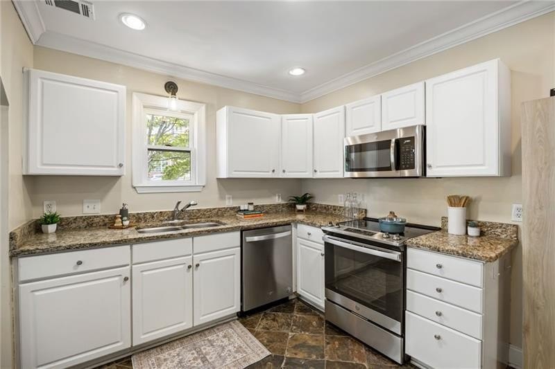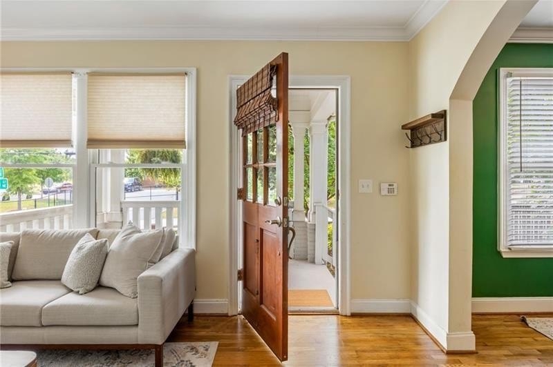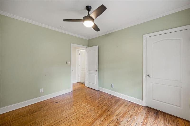 Discover the perfect blend of 1930s historic charm and modern convenience in this beautiful Atlanta home located steps from the Eastside Beltline Trail in one of Atlanta's most desirable in-town neighborhoods. This move-in ready residence features original heart pine and oak hardwood flooring, elegant arched doorways, and two original fireplaces that showcase authentic 1930s architectural details. The welcoming front porch and professionally fenced front yard create excellent curb appeal with privacy and security, while gated parking accommodates two vehicles and provides backyard access, in case you need covered bike storage. Inside, the open-concept floor plan offers a kitchen with sight lines to the living room, two bedrooms on the main level sharing one updated bathroom, and a spacious laundry room for added convenience. Upstairs, the oversized primary bedroom suite serves as a private retreat, featuring a jetted soaking tub, walk-in shower with separate water closet, double vanity, and generous closet storage, plus a private deck overlooking the peaceful backyard. The fully fenced backyard is ideal for outdoor entertaining with a large grilling deck and plenty of yard space, creating multiple outdoor living spaces with complete privacy. Along with Beltline and Path Trails, enjoy convenient access to Atlanta's best restaurants, shopping districts, and top-rated schools—experience walkable urban living at its finest in this exceptional historic home.