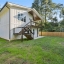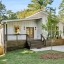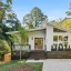 With its striking asymmetrical roofline, board-and-batten siding, and welcoming wood porch, this home perfectly embodies the timeless appeal of mid-century modern architecture. Inside, vaulted, sloped ceilings and expansive windows bathe the open layout in natural light, while wide-plank wood floors and a harmonious palette of gold, warm browns, and deep greens create an inviting flow throughout.