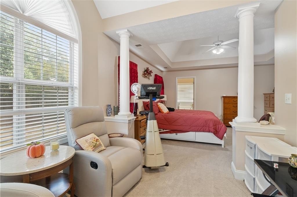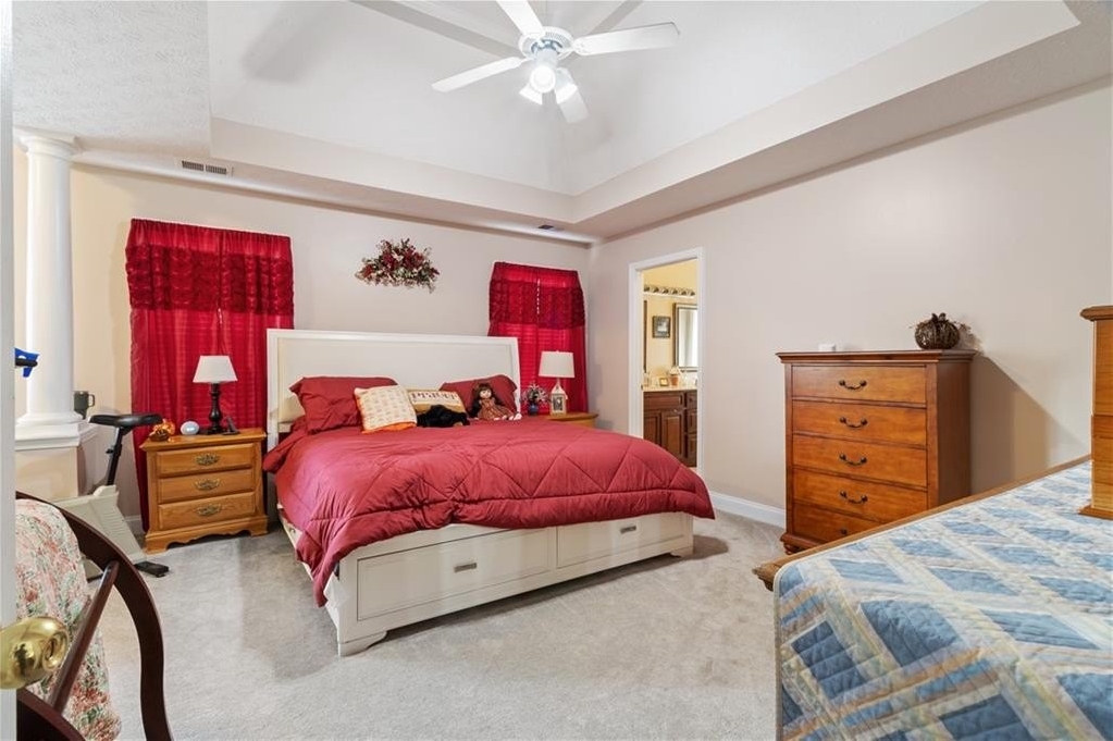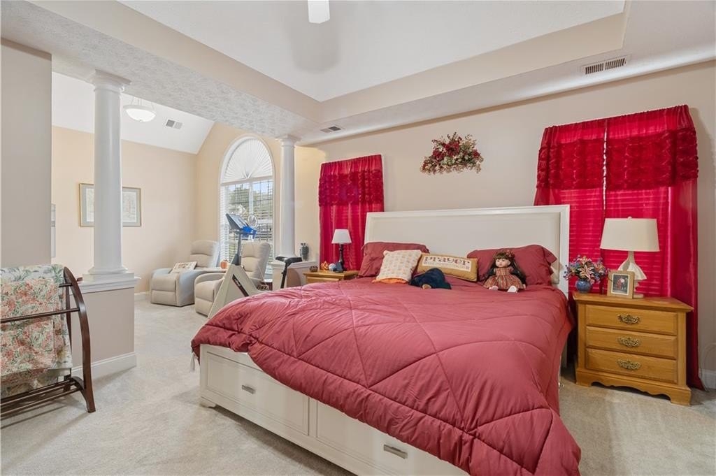 The primary suite is a highlight all its own—a spacious retreat designed for comfort and relaxation. With an oversized layout, a private sitting area, beautiful tray and vaulted ceilings, a roomy ensuite, and a walk-in closet, it’s a space that feels like its own getaway within the home. Additional bedrooms offer flexibility for family, guests, or a home office, ensuring there’s room for every need.
