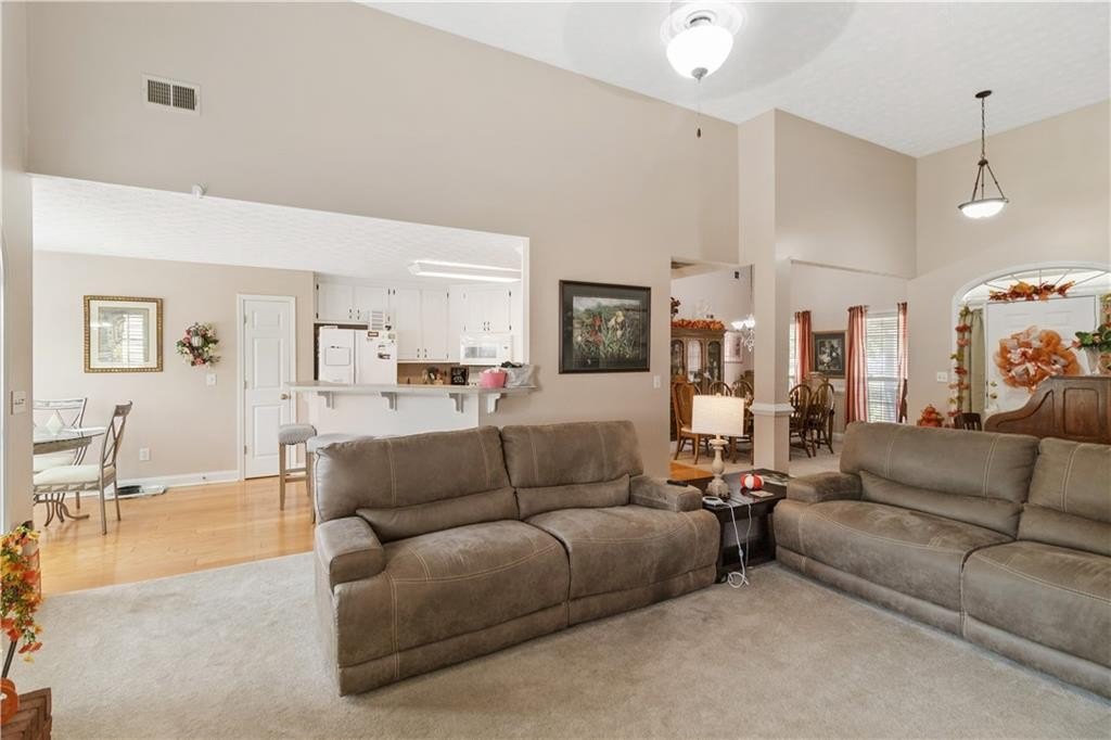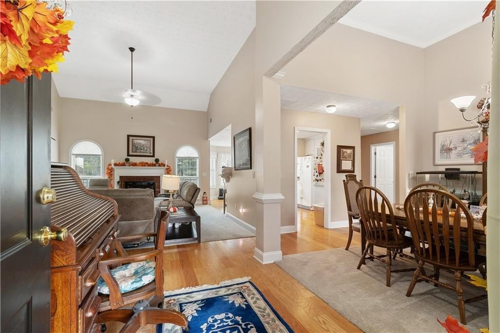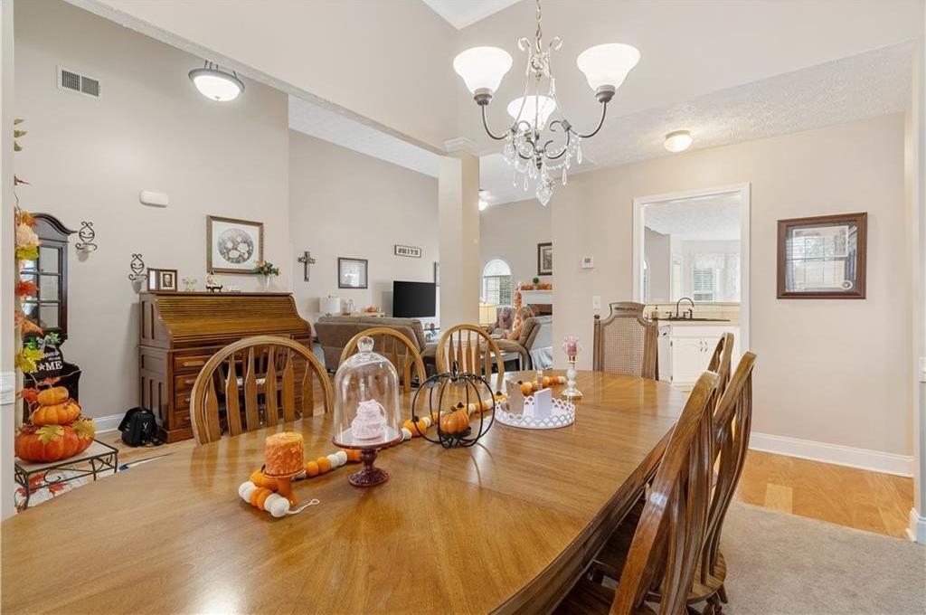 The family room makes a grand first impression with its high ceilings and generous layout, creating a space that feels both open and inviting. Whether gathering for movie nights or enjoying quiet mornings, this is the true heart of the home. Just off the main living area, the separate dining room stands ready for holiday feasts, dinner parties, or simply sharing meals with loved ones. The kitchen is equally accommodating, featuring abundant cabinet and prep space along with a bonus breakfast area that soaks in natural light and overlooks the backyard.