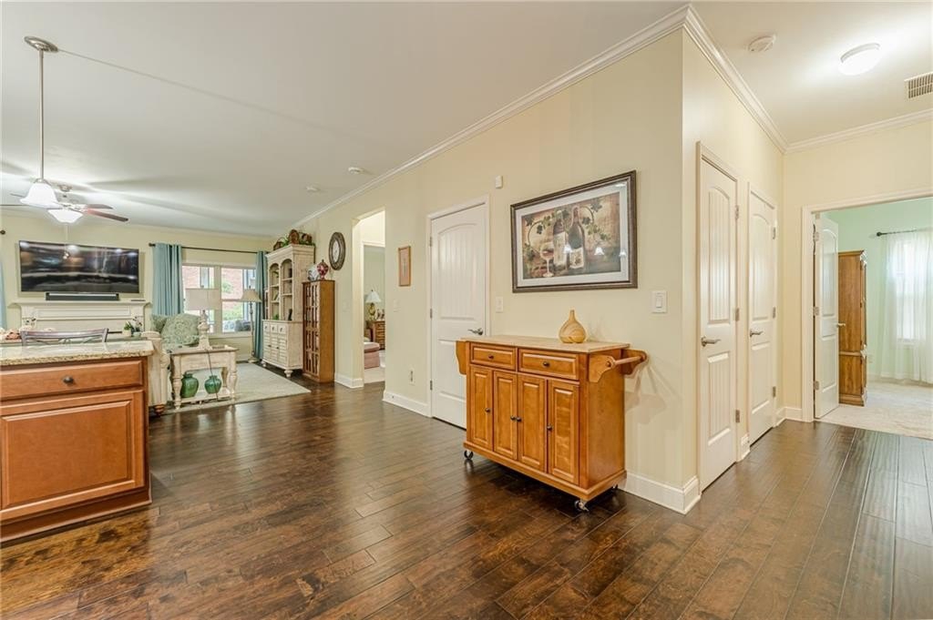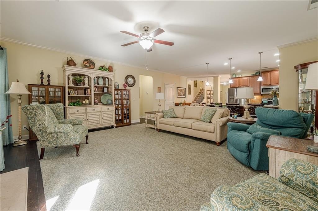 Step into timeless charm and modern luxury with this beautifully crafted Craftsman-style ranch home, perfectly situated in the highly sought-after NatureWalk 55+ community. Designed for vibrant, active living, this spacious residence offers the perfect blend of sophistication and everyday comfort. Inside, you'll be welcomed by a thoughtfully designed open floor plan, wide plank rich hardwood floors, high ceilings, and custom millwork that adds warmth and character throughout. The kitchen is a chef’s dream, featuring granite countertops, stainless steel appliances—including a gas range, built-in microwave, dishwasher, and refrigerator, walk-in pantry —and an oversized island ideal for casual meals or entertaining. The heart of the home is the expansive great room, where abundant natural light pours through large windows that frame serene views of the outdoors. A gas fireplace serves as the cozy focal point—perfect for relaxed evenings with loved ones. This home features four generously sized bedrooms, including an oversized owner's suite designed as a private retreat. The suite features a tray ceiling, a luxurious en-suite bath with an oversized custom shower, double vanity, and spa-like finishes that offer the ultimate in comfort and relaxation. Upstairs, you'll find a versatile flex space or fourth bedroom, ideal for a guest suite, home office, media room, or creative studio, whatever suits your lifestyle. Enjoy hosting memorable meals in the formal dining room, filled with natural light and elegant charm. Outdoor living is just as inviting, with a screened-in porch perfect for morning coffee or evening entertaining, all while overlooking your private, landscaped backyard. As a resident of NatureWalk at Seven Hills, you’ll have access to a private clubhouse, resort-style pool, and social events tailored for active adults. Plus, enjoy full access to Seven Hills' incredible amenities, including a 13-acre water park, tennis courts, dog park, and miles of biking and walking trails.