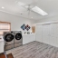 A few steps down from the kitchen, you’ll find a massive (the only one in the community) multi-purpose laundry room with a whole wall of storage cabinetry and plenty of room for a workout area, too. Still need more storage space? The garage adds another wall of storage cabinetry along with under-stair space, yet still affords room for your vehicles. There’s even a dedicated room for trash receptacles with convenient exterior and interior access!