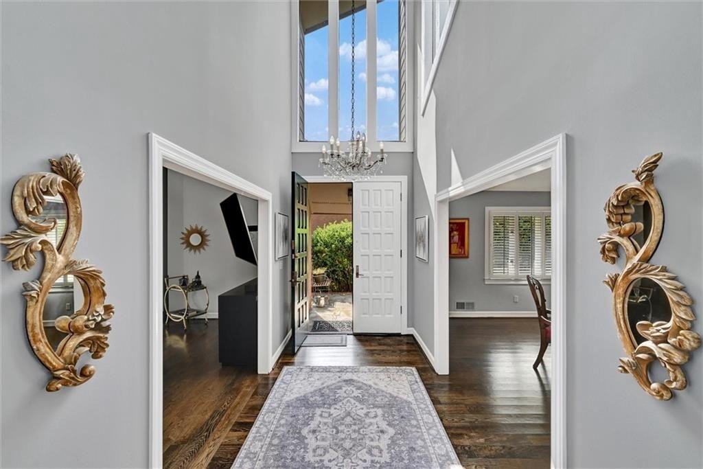 The magic unfolds from the grand foyer, with its soaring vaulted ceiling and truly spectacular 8’ tall double-door entry.