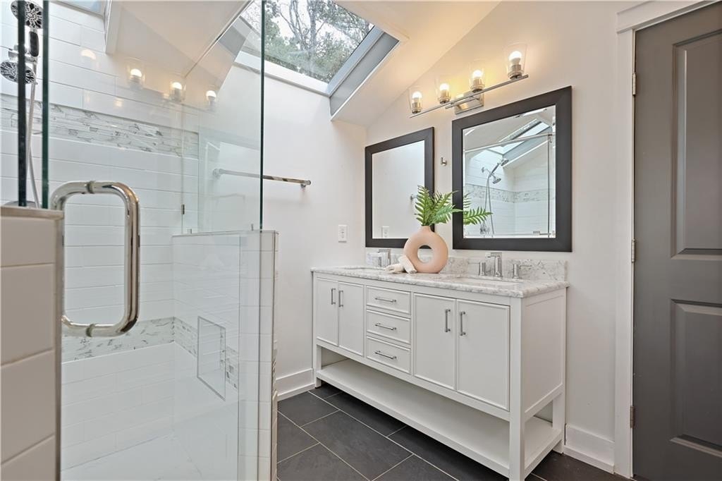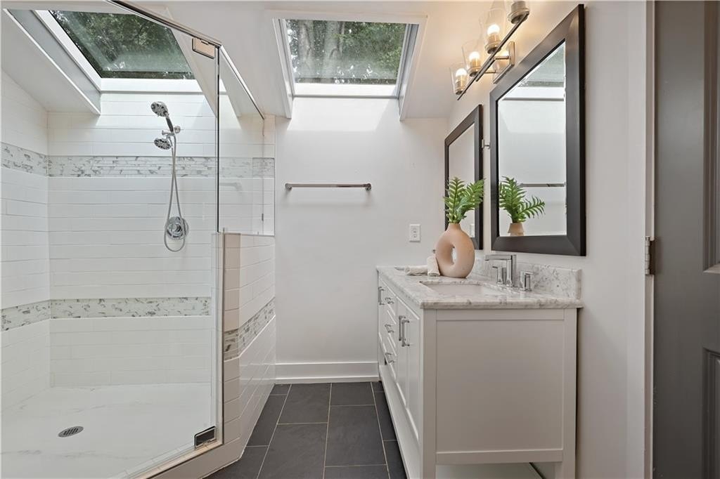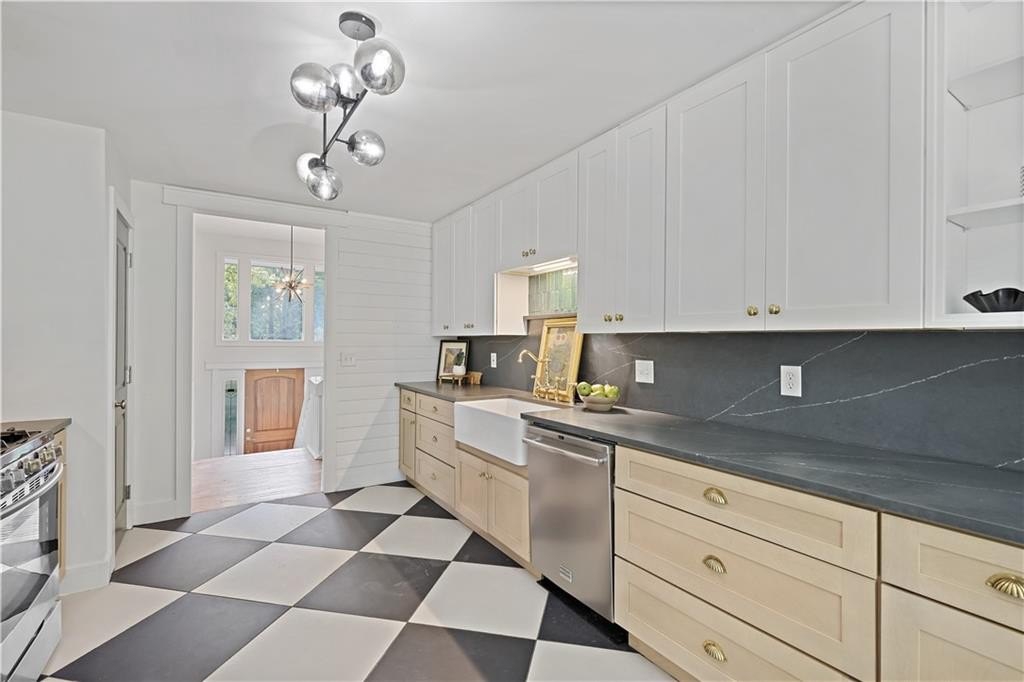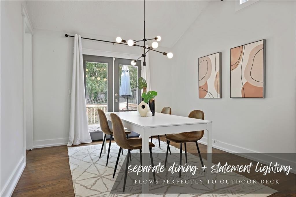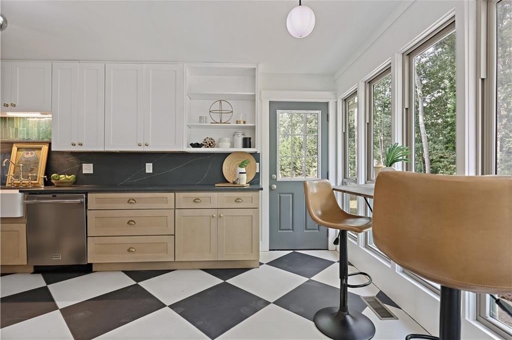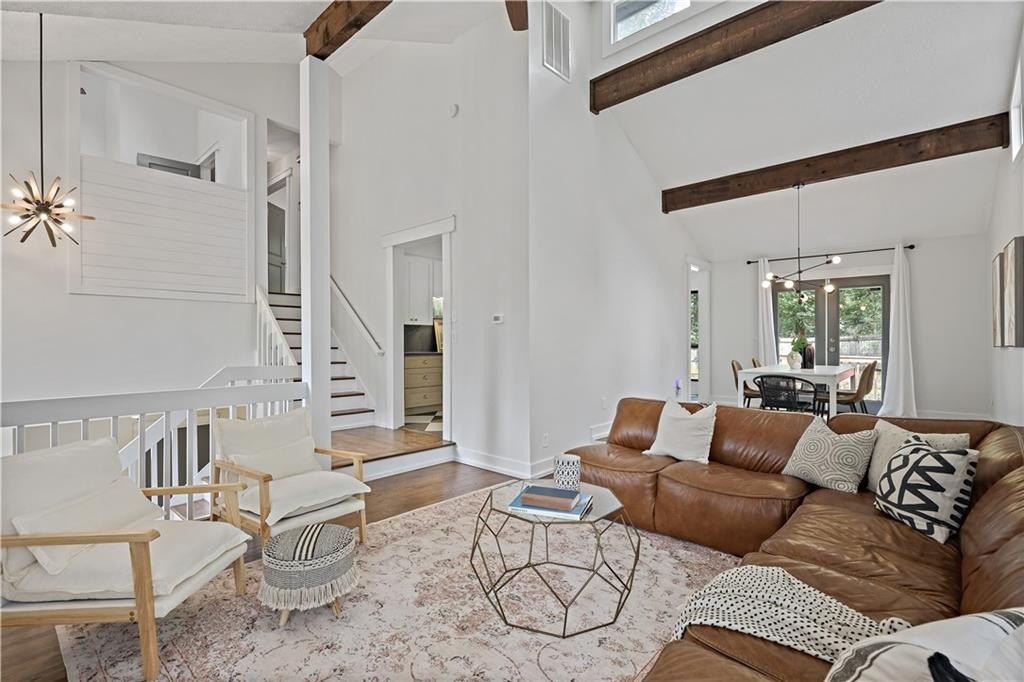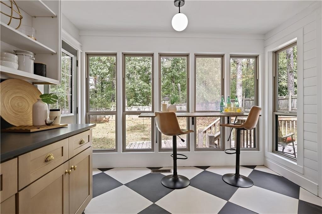 Step inside a home where light meets intention. This contemporary split-level welcomes you with soaring cathedral ceilings, exposed wood beams, and clerestory windows that bathe the interior in natural light. The custom kitchen drew a professional pastry chef to this house. He recognized what worked: warm wood lower cabinetry paired with crisp white uppers extending to the ceiling, maximizing storage while creating clean lines. Black quartz countertops and backsplash provide striking contrast, while upgraded appliances including a gas range and deep farmhouse sink make this kitchen as functional as it is beautiful. The breakfast bar overlooks the mostly private backyard, perfect for morning coffee or casual conversations while you cook. The main living spaces unfold with architectural drama. Step down into the sunken living room where vaulted ceilings with exposed beams create dramatic height, while a corner bay window frames views of mature trees and the stone fireplace anchors cozy evenings. The separate dining room flows seamlessly into this space, ideal for both intimate dinners and larger gatherings. The primary suite feels like a private retreat with vaulted ceilings and treetop window views. The renovated en suite bath features an oversized step-in shower with dual shower heads, custom niche shelving, and marble-topped double vanity. The walk-in closet offers generous storage with smart shelving systems. One of the secondary bedrooms features a converted "cloffice," a stylish nook that's perfect for remote work, creative projects, or focused study space. Step outside to discover two decks that extend your living space. Two decks extend your living space. The larger deck off the dining room works for outdoor dining, while the smaller deck off the kitchen puts you steps from your grill. The fully fenced backyard is level and tree-bordered, offering privacy and space for a future pool or garden. You'll find nearly five feet of clearance below in the encapsulated crawlspace with concrete floor provides clean, dry storage with potential for climate control. Practical peace of mind comes with a roof that's just 3 years old, fresh finishes throughout, and systems that work seamlessly together. This is a home where thoughtful design meets comfortable living, where natural light and smart layouts create spaces you'll love to inhabit. Arbor Station offers optional HOA living. You choose whether you want the resort-style amenities or prefer no HOA obligations. The amenities include two pools, tennis and pickleball courts, a clubhouse, basketball and sand volleyball courts, playgrounds, scenic walking trails, and baseball fields.