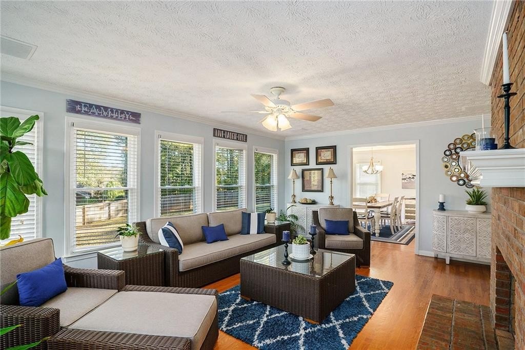 Step into your dream home: an impeccably preserved brick ranch nestled on a sprawling 1.32-acre lot, complete with a full basement! Fresh roof and windows were installed in 2021, ensuring peace of mind for years to come. The expansive great room offers a warm embrace with its double-sided fireplace that leads into a charming sunroom, perfect for morning coffee or evening relaxation.