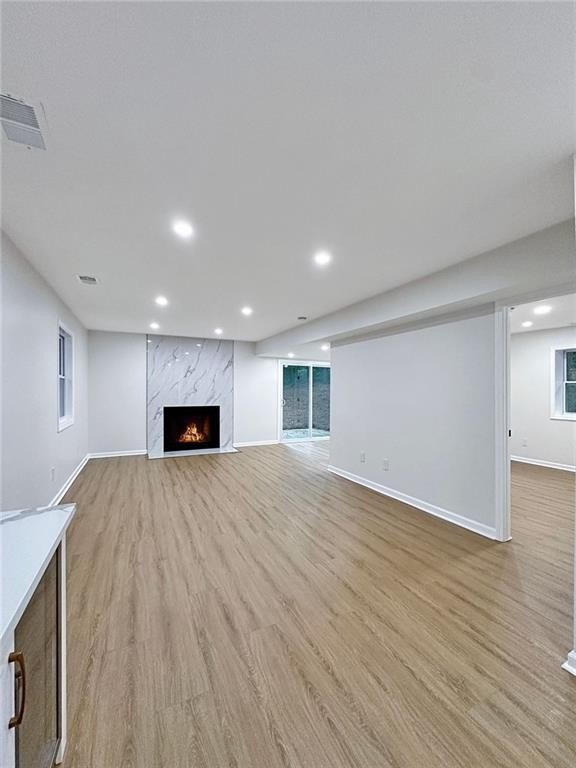 At the heart of the home, the chef’s kitchen shines with solid wood shaker cabinetry, quartz countertops, antique brass hardware, and an oversized waterfall island with a floating hood vent and island cooktop. Built-in microwave, new Samsung stainless steel appliances, and a stylish tile fireplace create the perfect blend of function and elegance. Three new sliding glass doors open to the expansive decks and professionally landscaped backyard—fully enclosed with a new privacy fence.