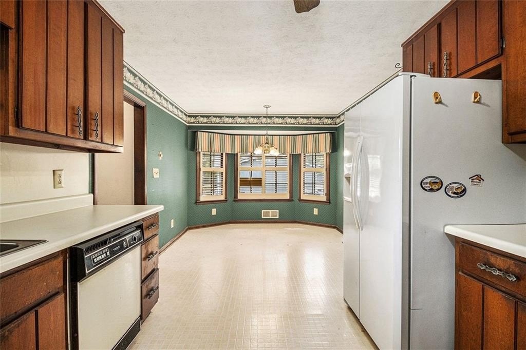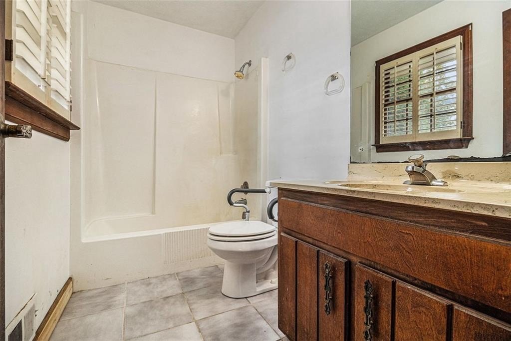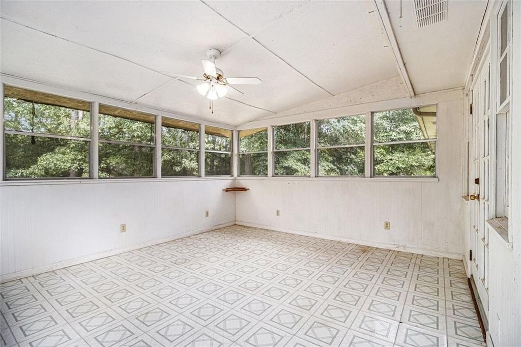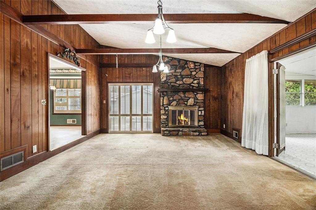 Rare opportunity on this ONE OWNER rustic style mid century mod. The interior of the home has been well preserved over time to retain the unique charm of the period with original fixtures throughout, solid wood doors, plantation shutters along with HVAC replaced 2022, Roof replaced 2017. Level living with foyer entry opens to the family room with vaulted beamed ceilings, masonry stone fireplace, and french doors that lead out to the large sunroom that is NOT included in sq ft. The eat-in kitchen features original hardwood cabinets, separate cooktop/wall oven with the breakfast area situated in the sunny bay window, and easy access to the laundry room. The primary suite is generously sized and includes an en suite bathroom, while two additional bedrooms provide flexible space for family, guests, or a home office. Huge patio area for entertaining. 2 car attached garage with a large additional custom built cedar closet storage. .47 acre level lot with private back yard and offers tons of curb appeal with the manicured front lawn. Quite well established neighborhood located in the Heritage High School district with only minutes to I-20/Flat Shoals Rd for easy commute, parks and DwnTwn Conyers.