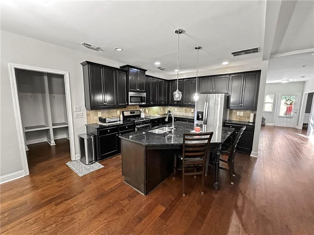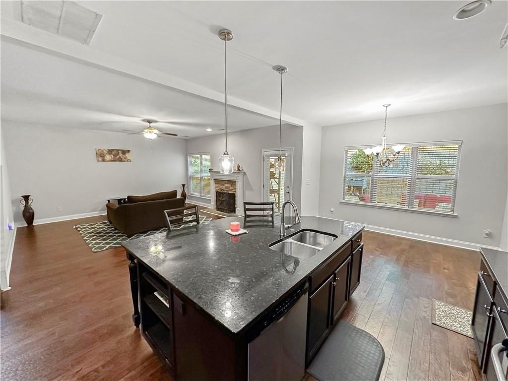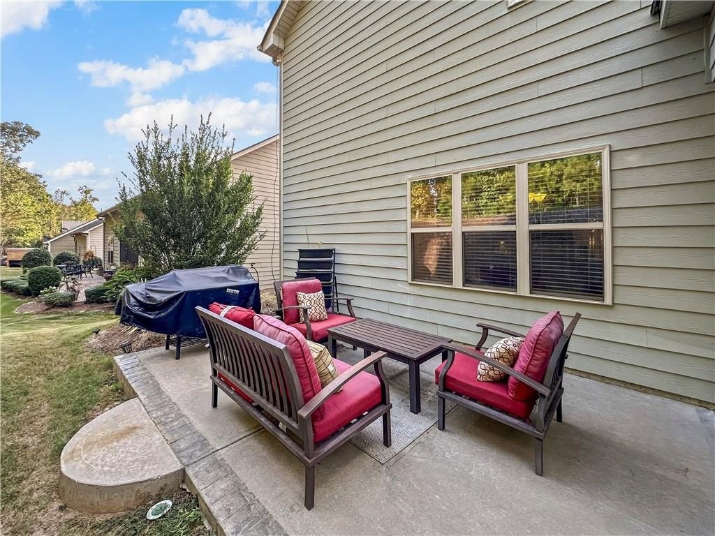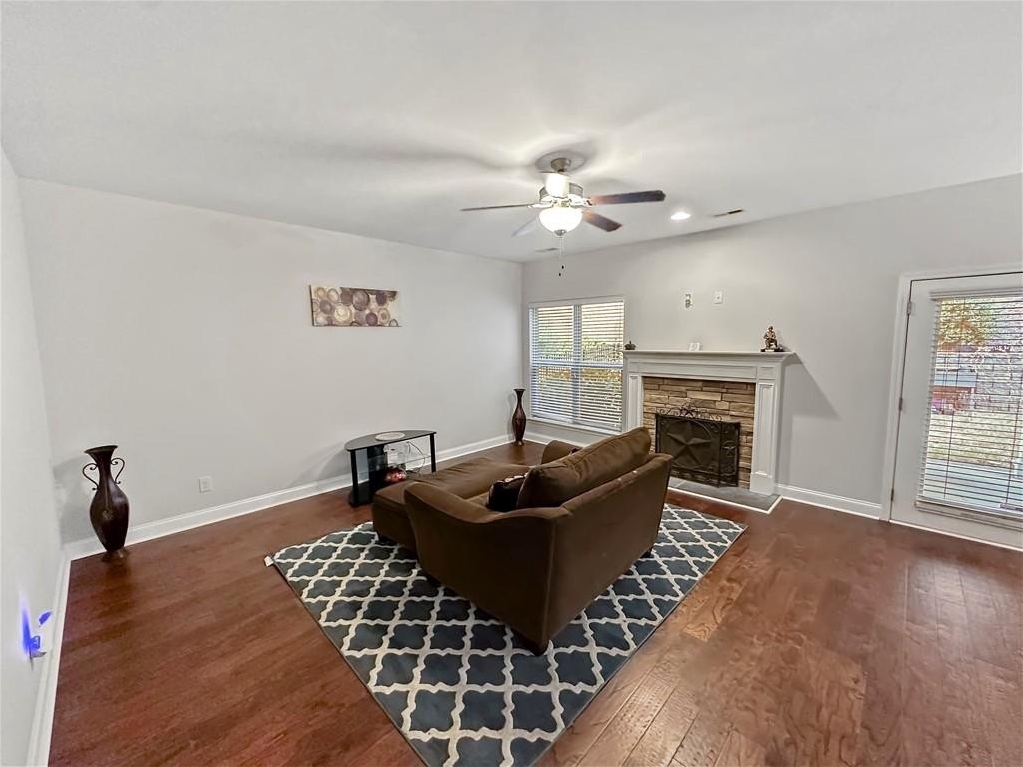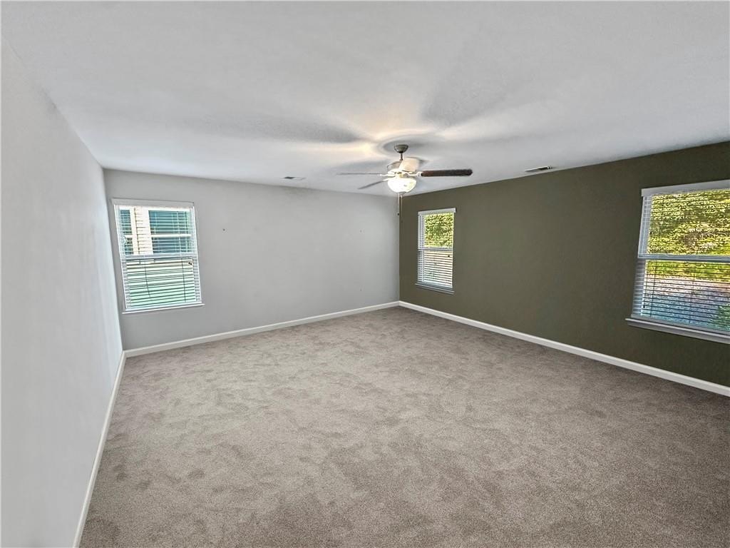 Meticulously maintained 4-bedroom, 2.5-bath home with an open-concept layout. Features include hardwood floors throughout the main and upper levels, a spacious kitchen with large island and pantry, separate dining room or office, and plantation shutters. The oversized primary suite offers a walk-in closet and a fully tiled bath with large shower. Secondary bedrooms are generously sized, and laundry is conveniently upstairs. Additional highlights include ample storage, garage ceiling system, and a large deck perfect for entertaining. HOA includes lawn maintenance. Conveniently located near shopping, dining, medical facilities, and easy access to I-85 and Atlanta.
