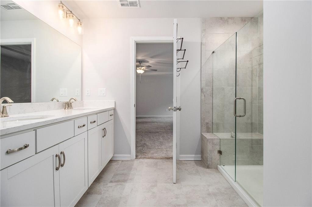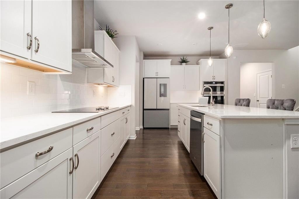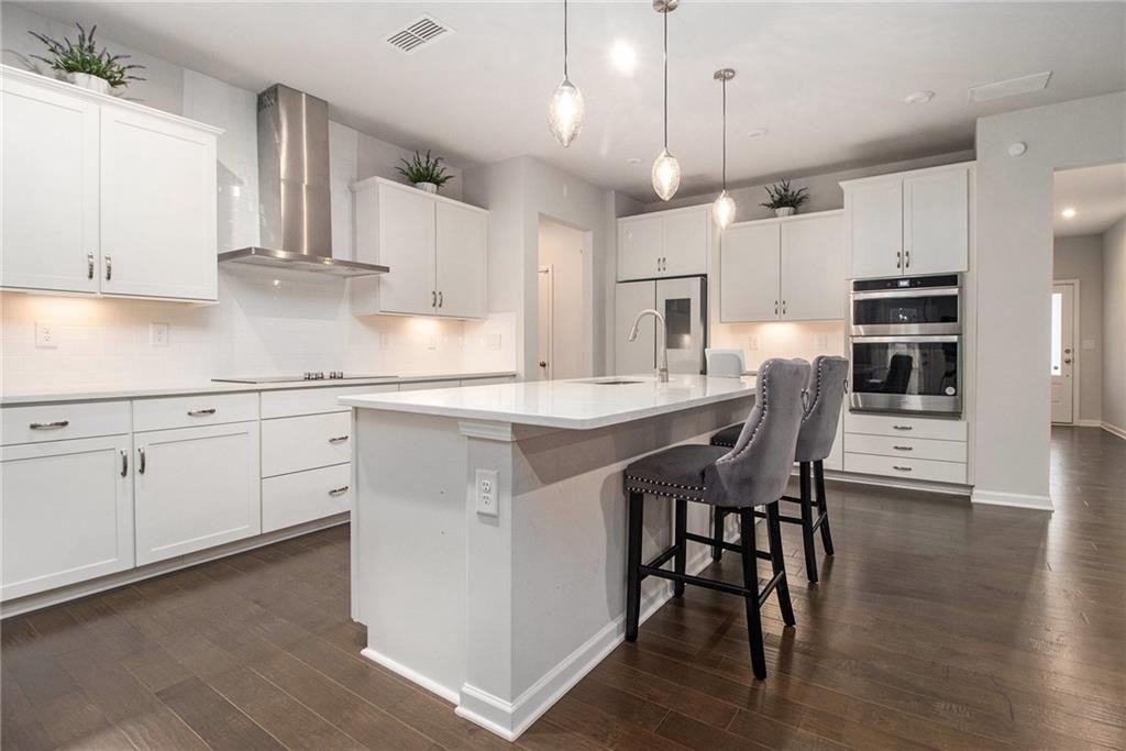 The chef-inspired kitchen features a convenient breakfast bar, ample cabinet space, and easy flow into the dining and living areas—perfect for entertaining. The primary suite is a true retreat with walk-in closets and a double vanity bath for added luxury. A bedroom on the main level provides flexible living space, ideal for guests or a home office.