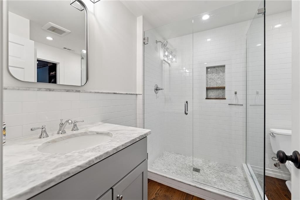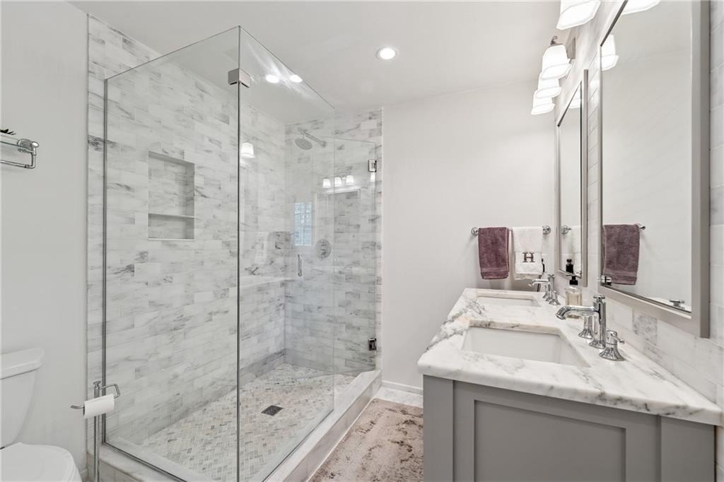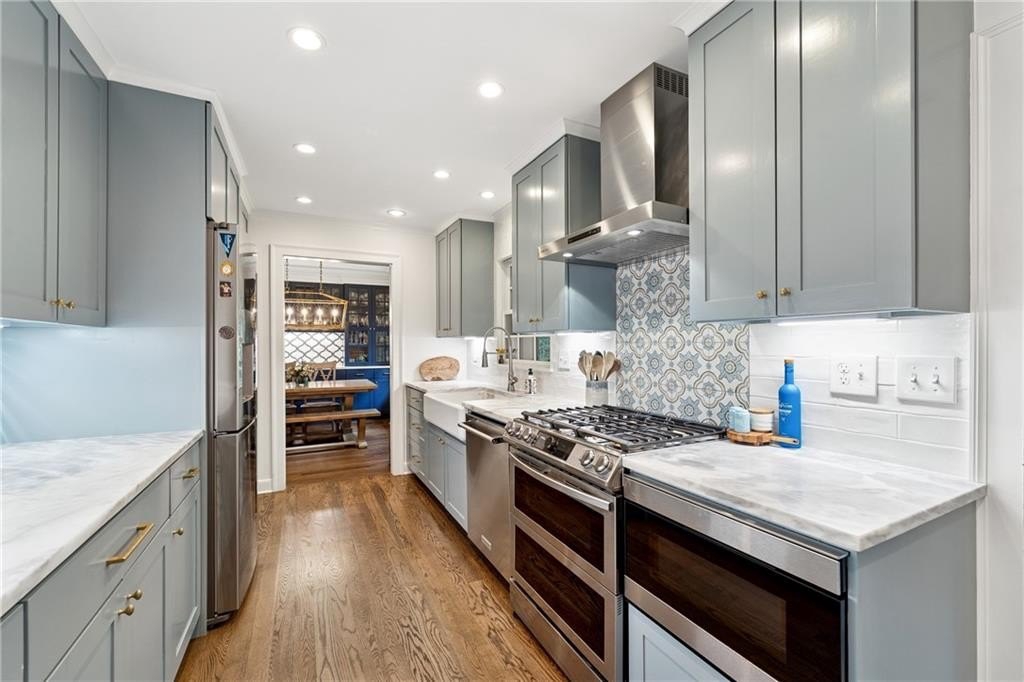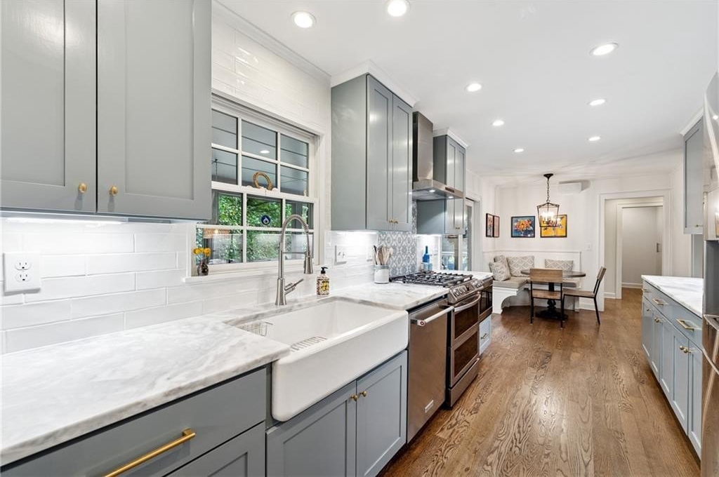 Warmth, comfort, quality and memory-making opportunities to last a lifetime — Welcome to 4015 Menlo Way! Located in the sought-after Evansdale/Lakeside school district, this spacious two-story farmhouse-style home has been thoughtfully renovated with high-end finishes and smart technology throughout! Step into a chef’s kitchen featuring custom cabinetry with pull-out drawers, pantry with layered swing-out shelving, luxurious Nova Blanca marble countertops, and striking encaustic-style tile backsplash. Spoil yourself with Smart appliances including Samsung gas range with double oven, microwave with wave-open drawer and hidden touch controls, and sleek, Samsung counter-depth French Door refrigerator. Charming built-in dinette seating completes this magazine-worthy space! Formal dining room right off the kitchen is home to the spectacular built-in china cabinet with glass doors, soft-close drawers and wine fridge! Upstairs, find four spacious bedrooms plus a bonus room/office, all with original hardwood flooring. The renovated bathrooms shine with comfort-height vanities and frameless, custom-tiled showers. Energy efficient, double-pane windows, custom 2” plantation shutters and spectacular White Oak hardwoods on the main! Finished terrace level adds even more versatility — enjoy the media/game room, additional bedroom/office, full bath, and cool industrial loft-style exposed utilities. The outdoor living is just as inviting! Be one with nature on the gently wooded and landscaped corner lot with split-rail fencing! Picture flag football games and firepit gatherings, quiet mornings with coffee on the screened porch with attractive and long lasting metal roof! Sunsets are better with friends — enjoy them on the comfortable (no splinters) Trex enhanced composite construction deck! Stay connected everywhere with Unifi Wireless Access Points throughout the home — even on the porch and deck! With newer major systems, including a newly encapsulated crawlspace with closed-cell insulation, a 10-mil vapor barrier, and R-13 batts in the framing, you can rest easy knowing this home has been maintained to last! Make your appointment today and let the memory making begin!