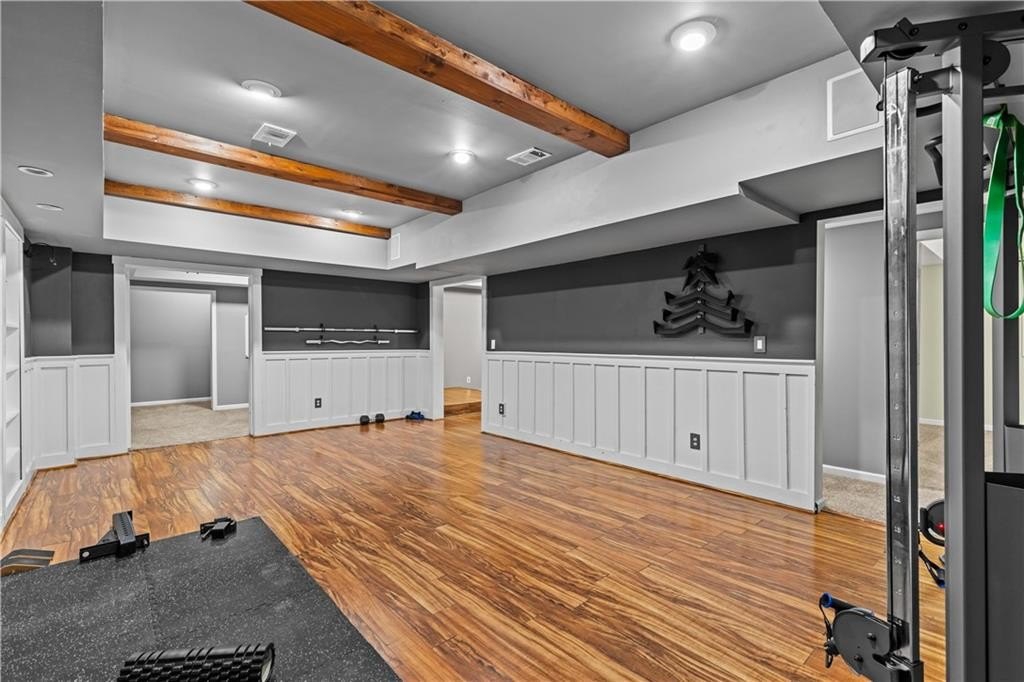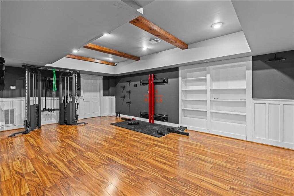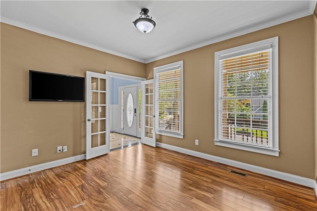 Rich hardwood flooring throughout main living areas