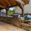 Relaxing hot tub nestled beneath a beautifully crafted cedar pavilion, offering shade and ambiance