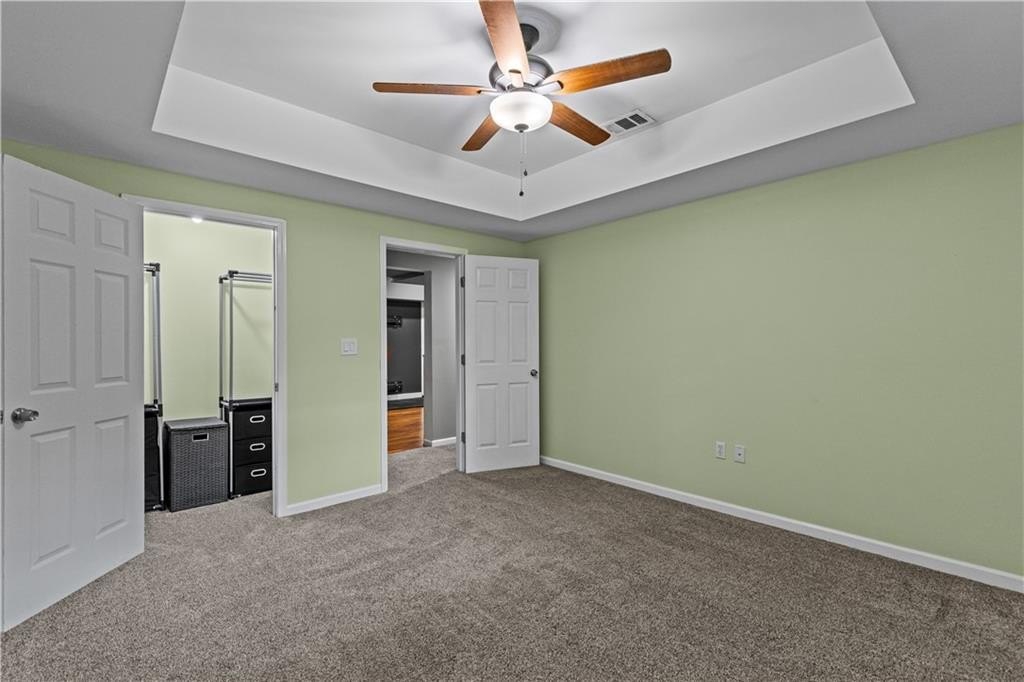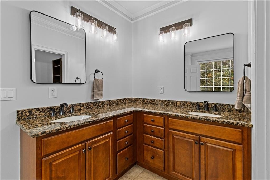 Luxurious owner’s retreat includes a spa-inspired bath with soaking tub, dual vanities, walk-in shower, and expansive walk-in closets