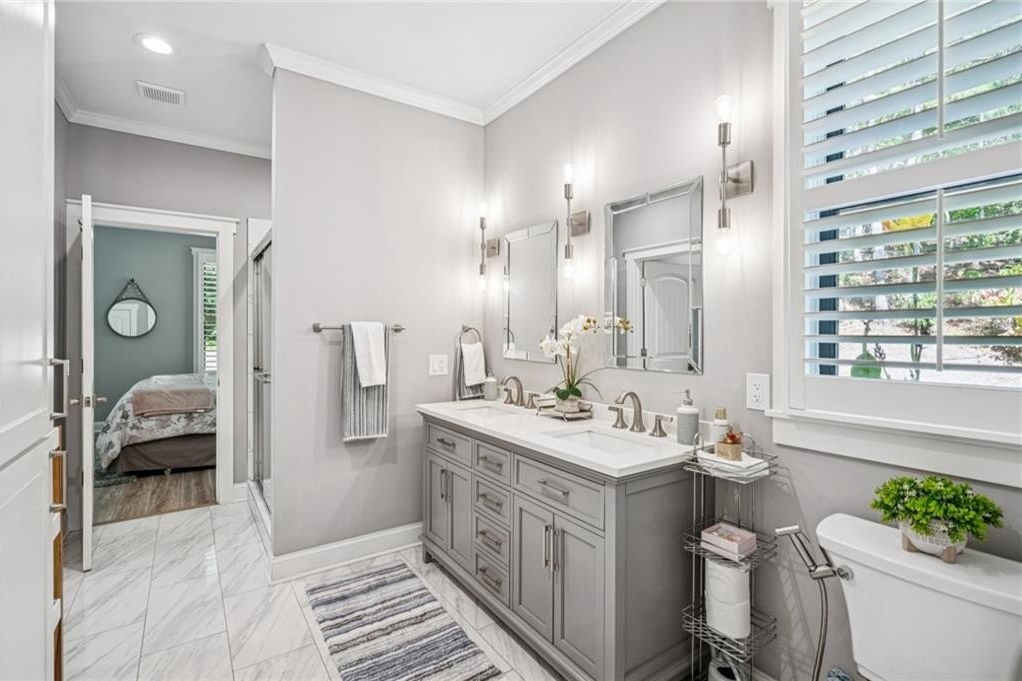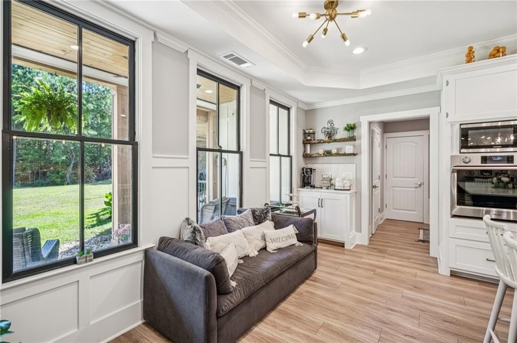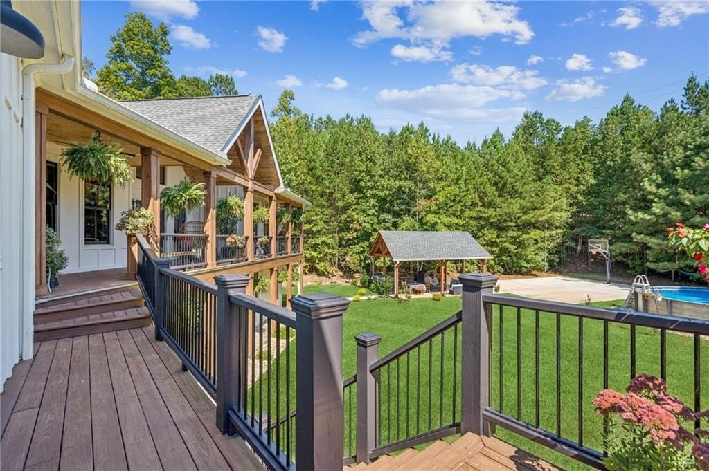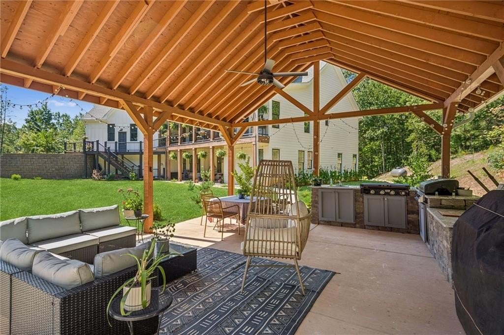 Thoughtfully designed for MULTI-GENERATIONAL LIVING (EXTENDED TWO FAMILY HOME), this beautiful 5-bedroom, 4.5-bath home sits on more than 4 wooded acres in the gated Cove Lake community just outside Big Canoe. The main level features a chef’s kitchen with a large quartz island and gas range, a spacious great room and dining area, a luxurious primary suite, a second ensuite bedroom, a versatile bonus room, and a kitchen-level two-car garage.