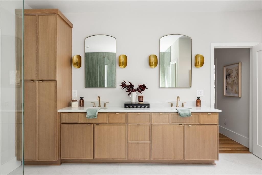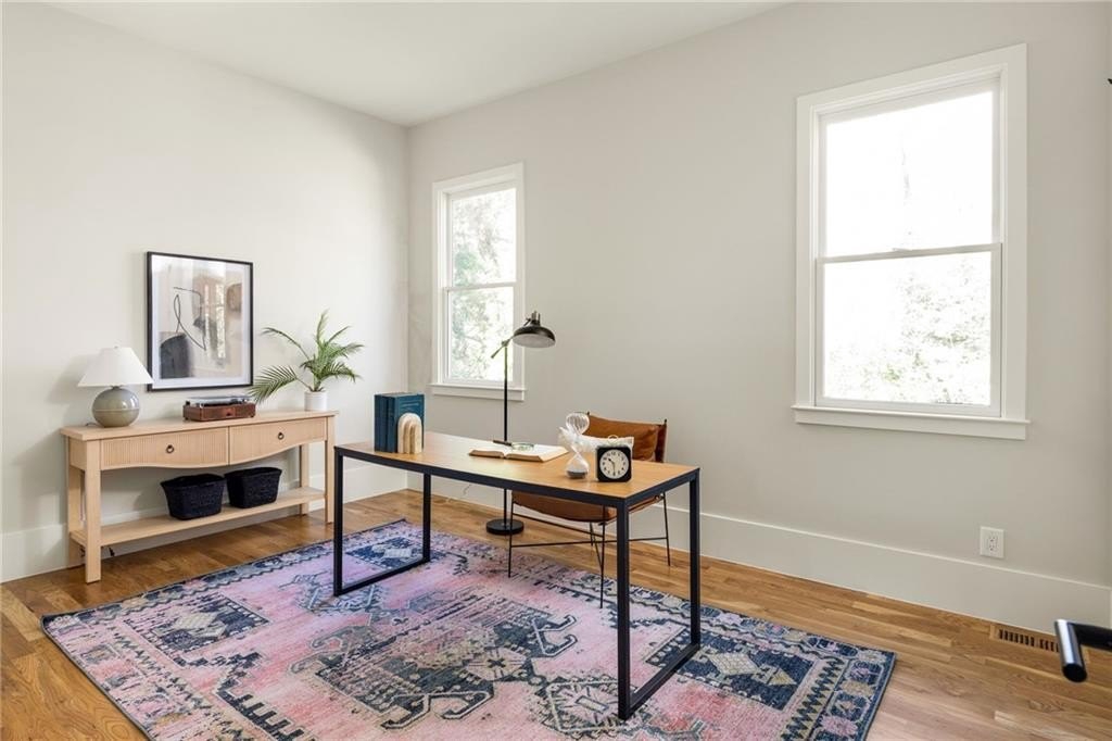 UNDER CONSTRUCTION. Welcome to your brand-new dream home in Woodland Hills, built by acclaimed build group, Atlanta Remodeling & Construction (ARC), and slated for completion in late Q1 2026. This 5 bedroom, 4.5 bath brick front residence spans ~3,600 sq ft and showcases every modern convenience today’s buyer desires. A covered front stoop with steel french doors opens to a welcoming foyer with site-finished hardwood floors that run throughout the home. The main level offers a versatile bedroom or office with full bath, a semi-private dining area that seats 8–12 comfortably, and an expansive open concept living room and chef’s kitchen. The kitchen impresses with dual-toned slim shaker cabinetry, quartz countertops, designer lighting, and imported Bertazzoni appliances, while the living room features built-ins, a gas fireplace, and direct access to a large covered porch with its own fireplace. The covered porch overlooks a flat, fenced, pool-ready backyard. A butler’s pantry with sink, custom mudroom, and stylish half bath complete the first floor. Upstairs, the luxurious primary suite boasts tray ceilings, spa-like bath with massive shower, soaking tub, private water closet, double vanities, and an incredible his-and-hers walk-in closet. Three additional bedrooms, two bathrooms, and a full laundry room with sink complete the upper level. Additional highlights include a 2-car garage with 220V EV charger, tankless water heater, and designer-selected finishes throughout. All in a prime location with easy access to Morningside, Emory/CDC, Buckhead, interstates, shopping, dining, and more. Schedule a site visit tour today! Floor plan and design finishes are for this home, the photos represent other recent projects.