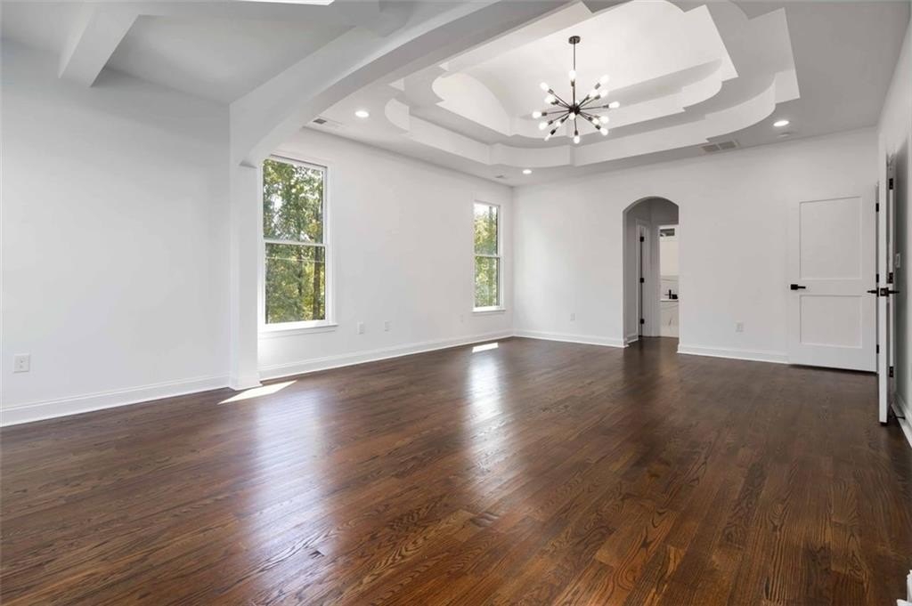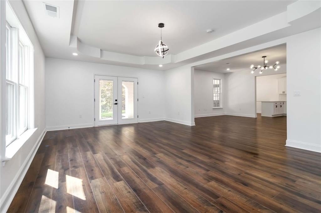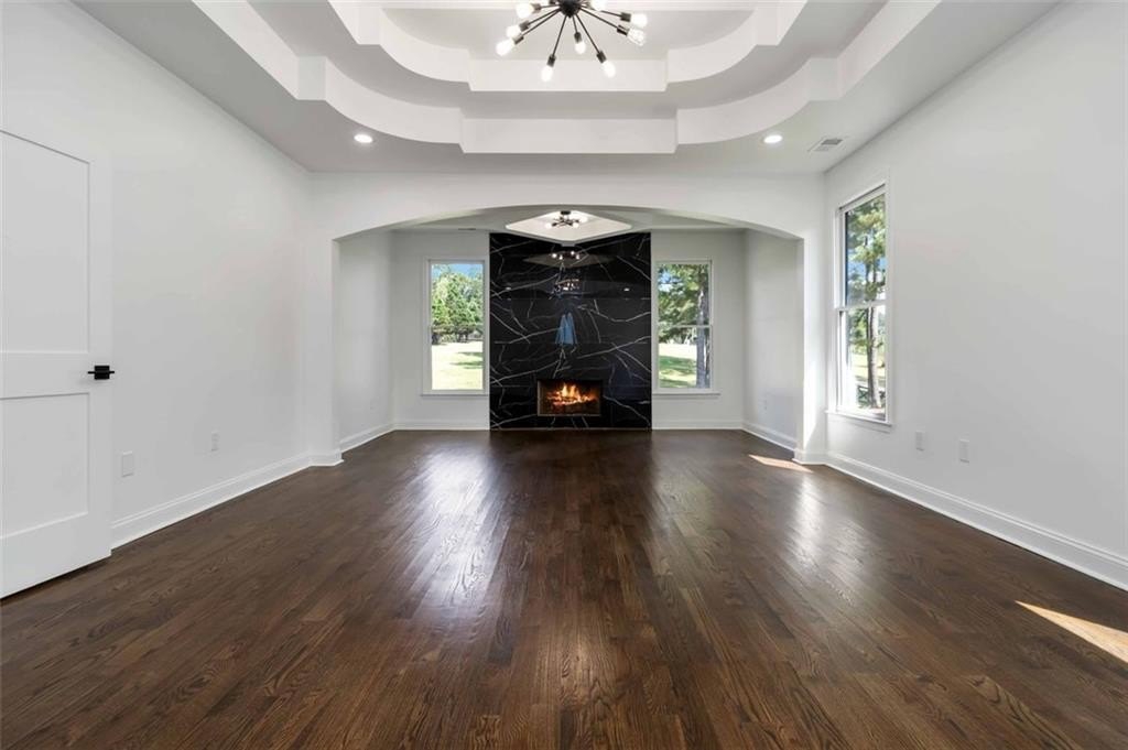 Step inside to discover a main-level owner’s suite with cozy fireplace and spa-inspired bath, offering a true retreat. The open-concept great room seamlessly connects to a chef’s kitchen with custom cabinetry, premium appliances, and high-end finishes. French doors lead to a sweeping covered patio, perfect for entertaining or quiet evenings outdoors.