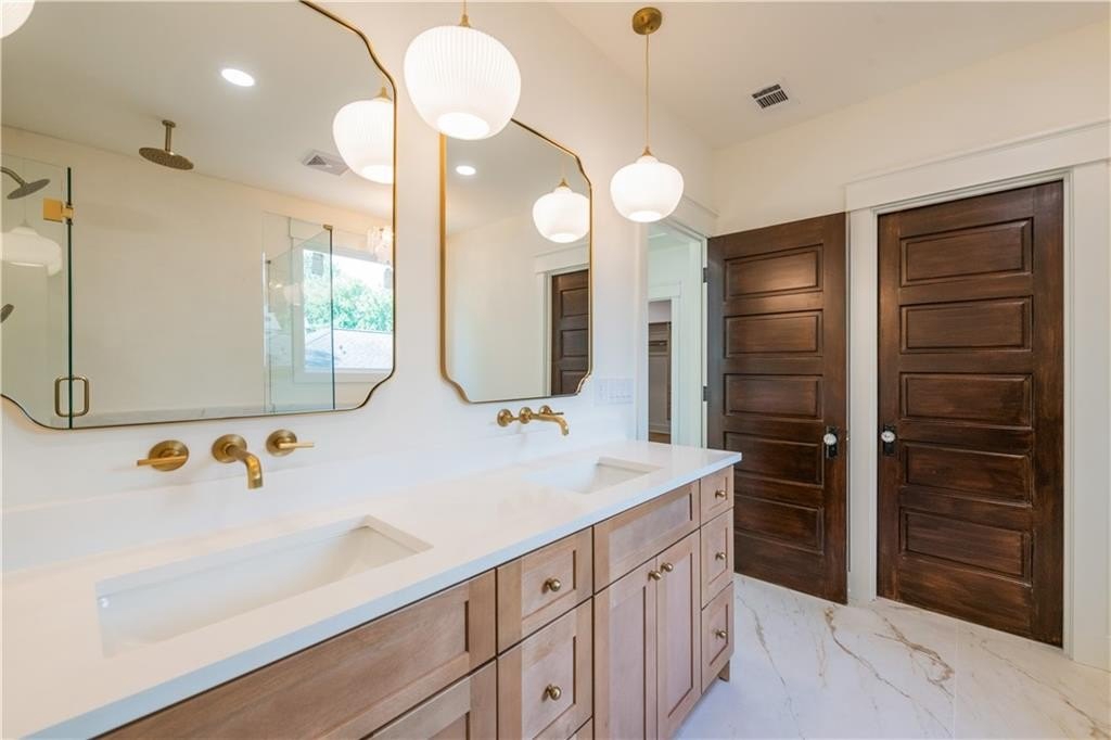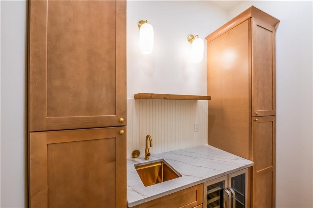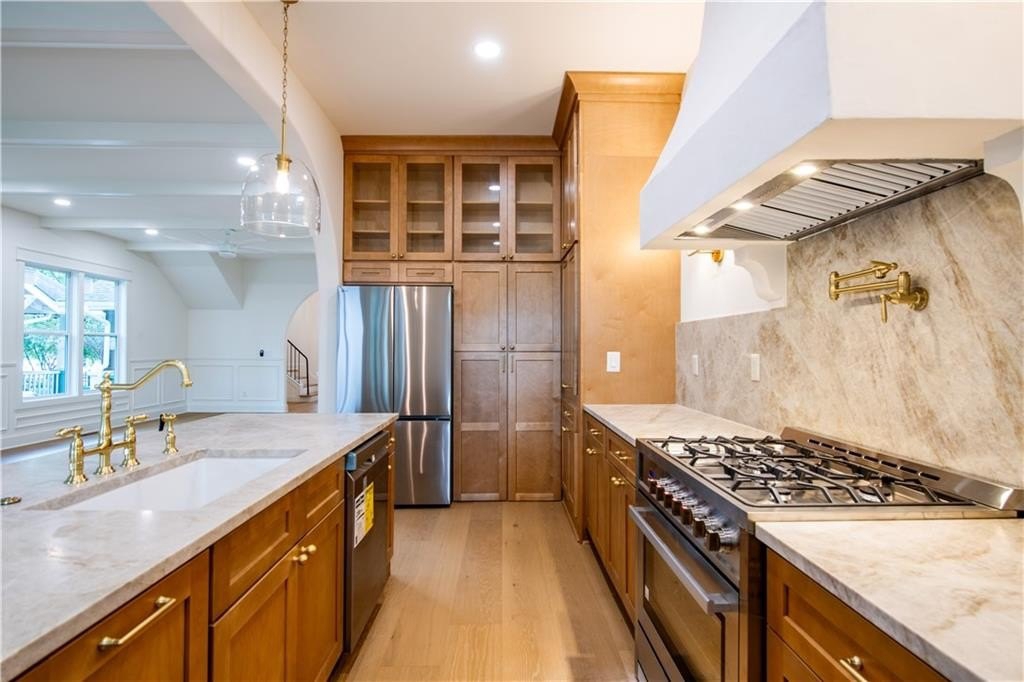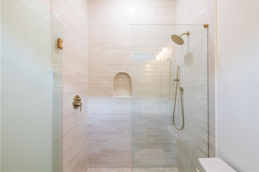 Fully modern luxury features include a European hand-troweled plaster primary shower, a spacious walk-in closet in the primary suite, an oversized kitchen range, Taj Mahal quartzite countertops, and a hidden butler’s pantry complete with a wet bar and dual zone wine cooler. Each bedroom includes its own ensuite bathroom with custom tile and finishes.