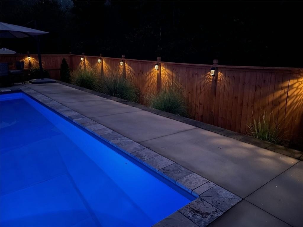 Step outside and experience vacation living in your own backyard. The fenced yard features a coverd patio with a 55" Samsung TV and an in-ground pool, creating an entertainer’s paradise for summer gatherings, barbecues, or simply relaxing poolside.