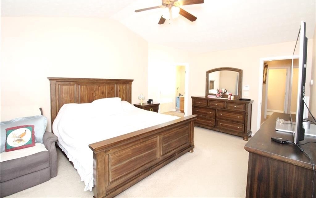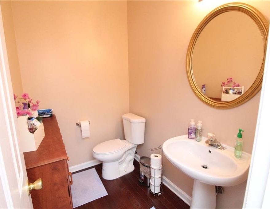 Upstairs, the primary suite features a double vanity and generous closet space. Two additional bedrooms and an upstairs laundry room add to the home’s practical design. Both full bathrooms include dual sinks, making busy mornings a little easier.