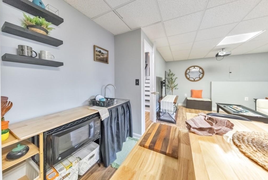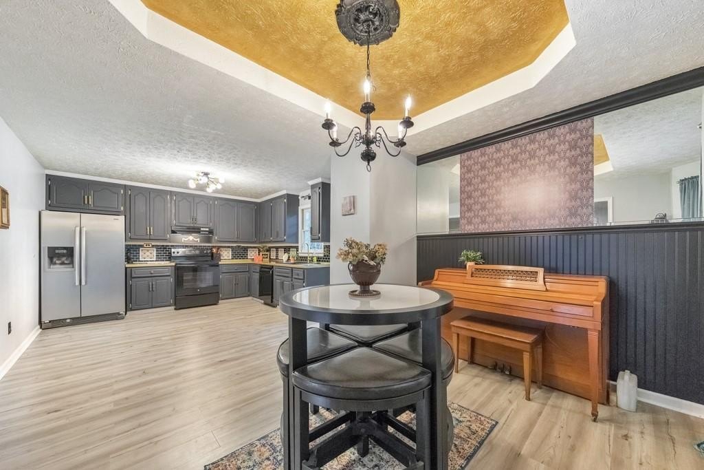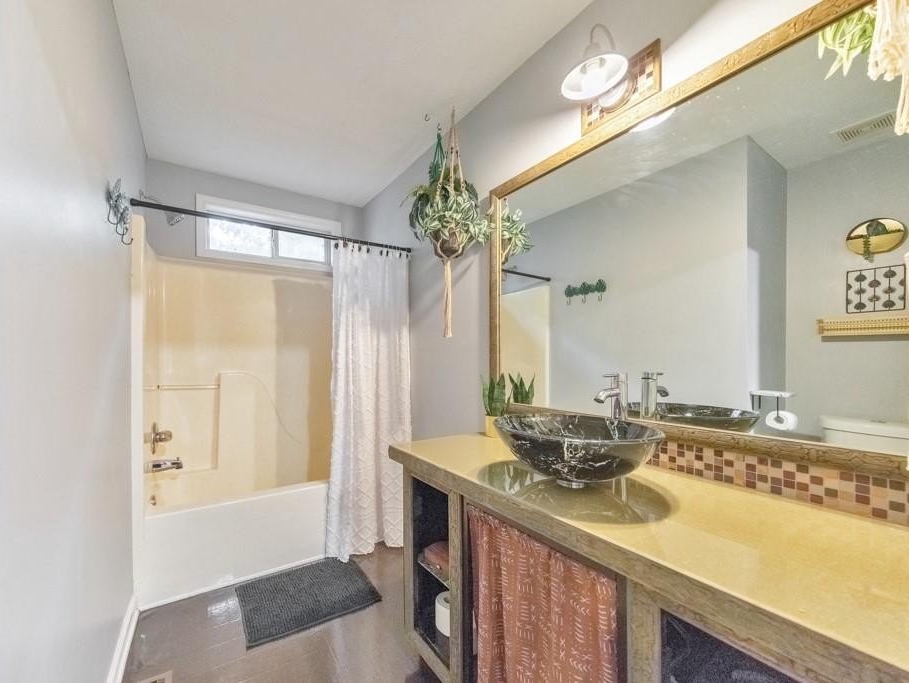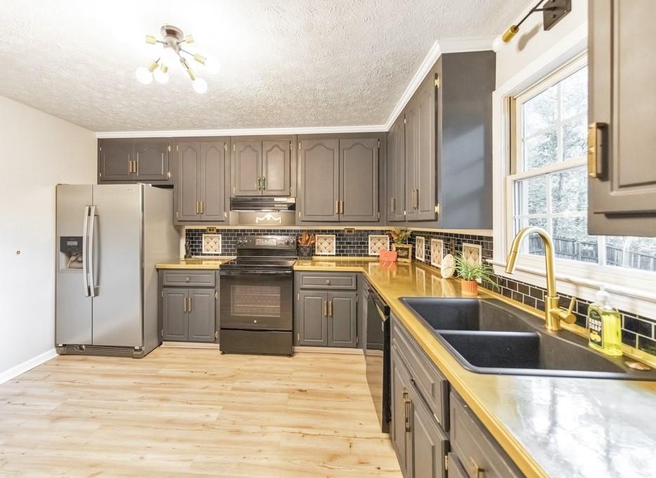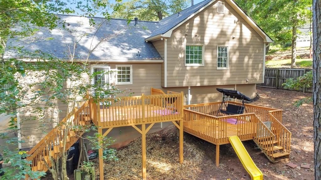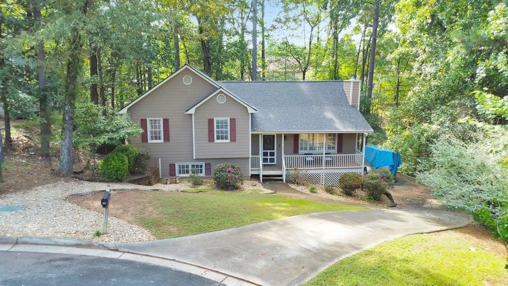 Welcome to this beautifully maintained 4 bedroom, 3 bathroom split-level home in the sought-after Queensbury Orchard community of Acworth. A charming covered front porch invites you inside to a fireside family room with vaulted ceilings and a separate dining room with elegant tray ceilings. The updated kitchen offers stone countertops, abundant cabinetry, ample counter space, and a convenient pantry. Upstairs, the primary suite features tray ceilings, a walk-in closet, and a renovated bath with double vanities, while two spacious secondary bedrooms share a full hall bath. The finished basement is perfect for an in-law suite or private guest retreat, complete with a large bonus room, kitchenette, full bathroom, and a fourth bedroom. Enjoy outdoor living on the two expansive decks—one on the main level and one on the terrace level—overlooking the spacious fenced backyard. Additional highlights include an attached 2-car garage and a peaceful cul-de-sac lot. Located in the desirable Etowah High School district, this home offers easy access to Downtown Acworth, Downtown Woodstock, Lake Allatoona, and a variety of shopping and dining options.