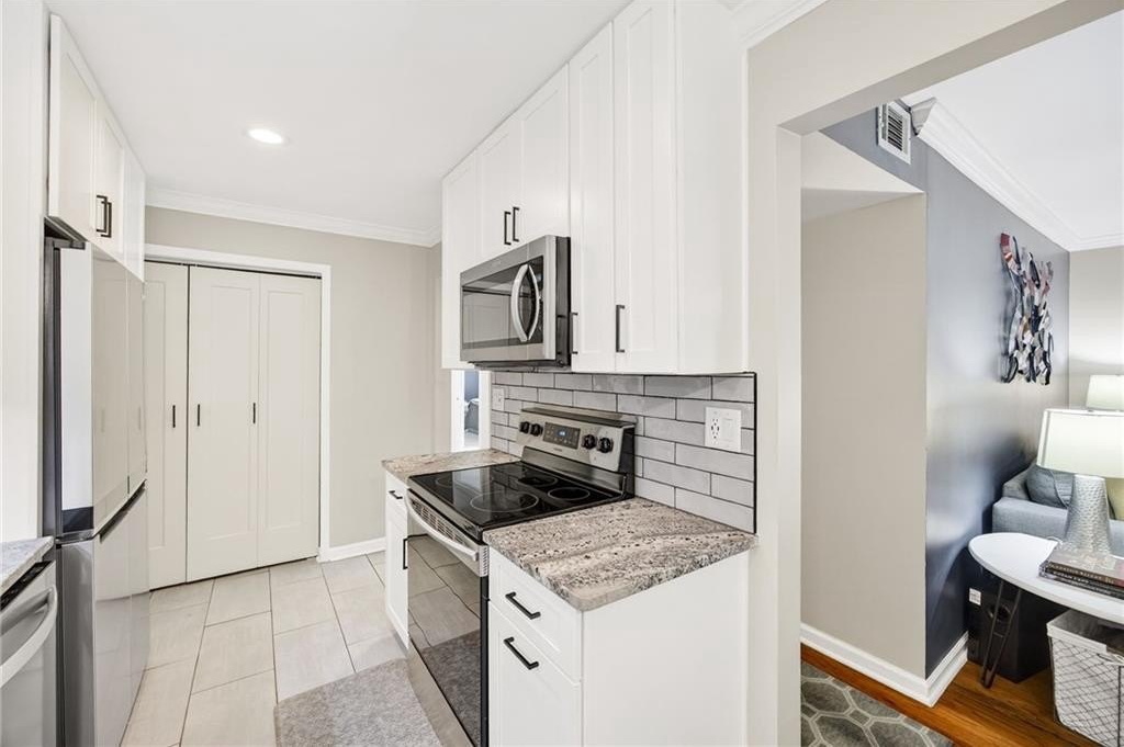 Looking for a slice of serenity in Sandy Springs? One of the most spacious, 2BR/2BA condos you’ll find in the area, this huge 1,425 sq ft in this advantageously located, Elizabeth Heights community has all the right renovations! Nestled in northern Sandy Springs near the Chattahoochee River, just south of Roswell and East Cobb, this community offers the perfect blend of urban amenities with a quieter natural setting. The condo has undergone significant renovations, adding $40-50K in value during its ownership, making it a turnkey and providing peace of mind while ensuring move-in readiness. Looking for a fully renovated kitchen? This one has it from top to bottom, from the addition of the recessed lighting to the tiled flooring, complete with white soft-close cabinetry, new stainless steel appliances, premium grade granite, counter-depth fridge, counter-height seating, and open U-shaped layout to dining/living area! The primary bath has also been updated throughout with new tiled enclosure, marble countertop, vanity, cabinetry, and fixtures, paint, flooring, and lighting with ample walk-in closet. The HVAC system and water heater are also newer. There's abundant storage throughout, with deep closets in the bedrooms, built-in storage for a deep utility closet, and improved laundry space where every inch adds utility. The secure and gated community's amenities feature all the conveniences without the headache. The monthly assessments cover water, sewer, trash, internet, cable, termite, exterior maintenance, pest, and common area maintenance. There's a community pool and clubhouse thats available for rental. Common areas feature picnic tables for gathering and BBQing are located just a building away. Pet stations are located throughout maintained green space in the community. Amazing access to GA-400 via Abernathy or I-285 from Roswell Rd, one can get to Buckhead, Midtown, Roswell, Dunwoody, and Brookhaven’s or the Battery's endless dining, shopping, and entertainment options with ease. Just a stone’s throw to Perimeter Center, the employment hub for Fortune 500 companies, renowned medical facilities on the Glenridge Connector, Historic Roswell, and plethora of community events at the new Sandy Springs City Springs. For the nature lovers/outdoor enthusiasts alike, the home is only 5 miles from Chattahoochee River National Recreation Area, Big Trees Forest Preserve, and Morgan Falls Overlook. Nearby North Springs Marta station. Award winning STEM/STEAM schools - Woodland Elementary and North Springs High districted. Only 30 mins to Hartsfield Intl Airport. Great opportunity to establish roots with a move-in-ready condo in the heart of Sandy Springs.