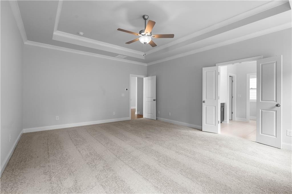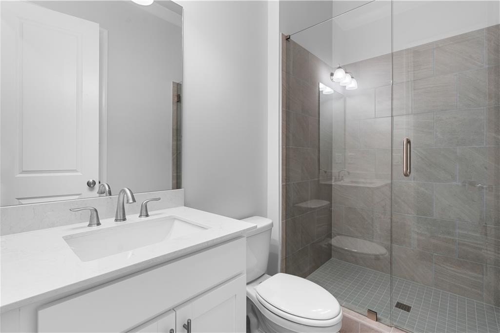 The second level includes a versatile media room, while the 3rd floor is dedicated to a private 5th bedroom and bathroom, perfect for guests or family members seeking a bit of seclusion. The luxurious owner’s suite on the upper floor is highlighted by a 10-foot tray ceiling and a beautifully appointed en-suite bathroom that includes a Designer Tile Shower with a Frameless Shower Door and a Soaking Tub. Positioned just 1.5 miles from Interstate 400 and minutes from the new Cumming City Center, Cumming Parks and Recreation, Historic Downtown Cumming, and Halcyon shopping, this home offers both convenience and charm. [The Caplin]