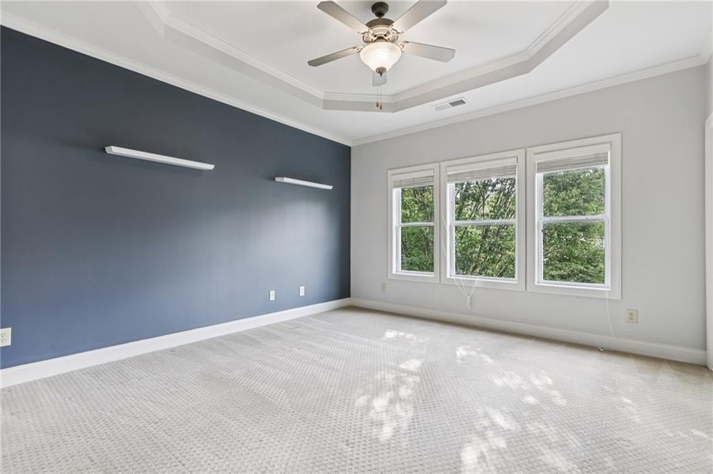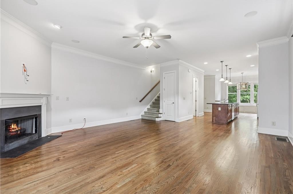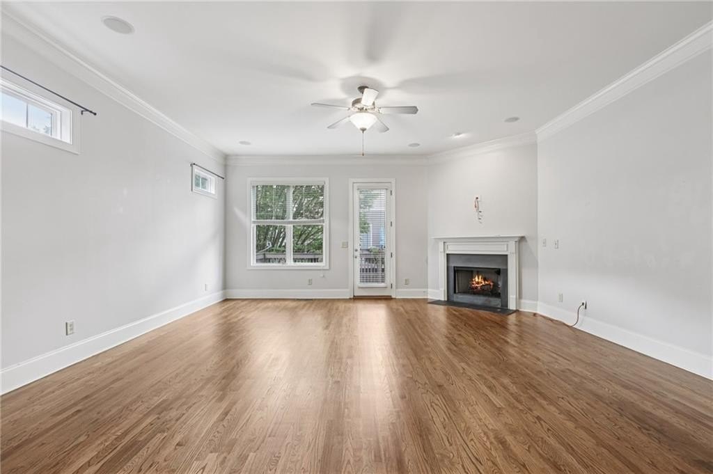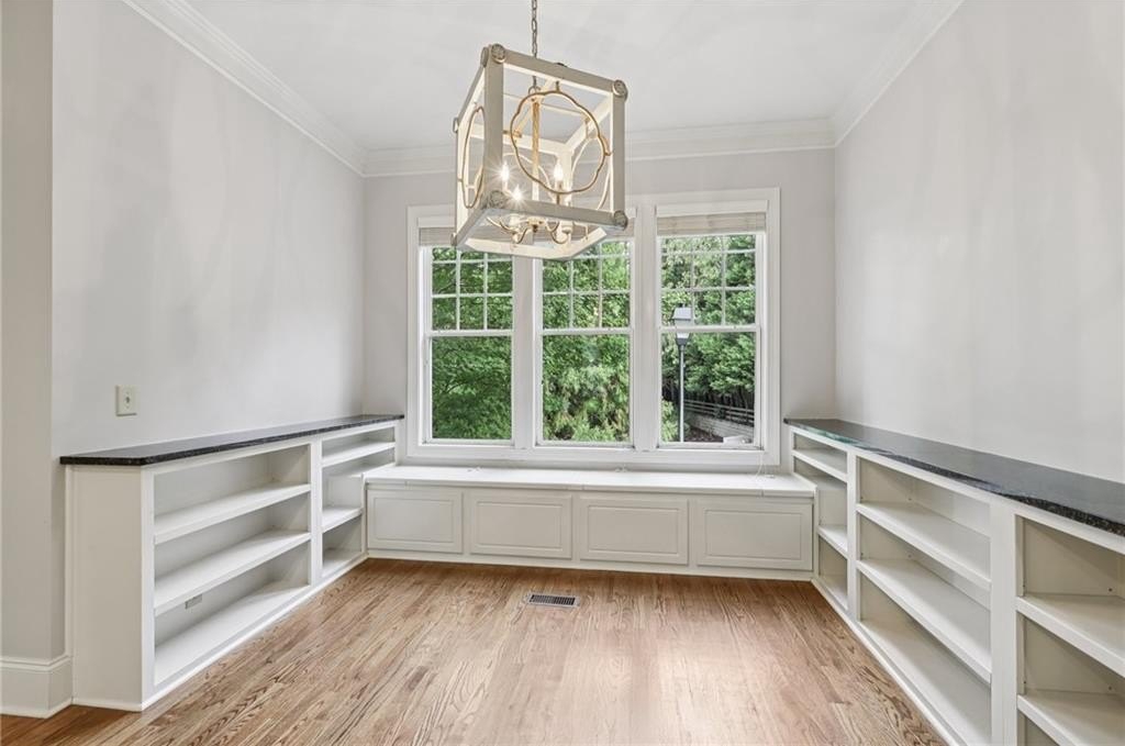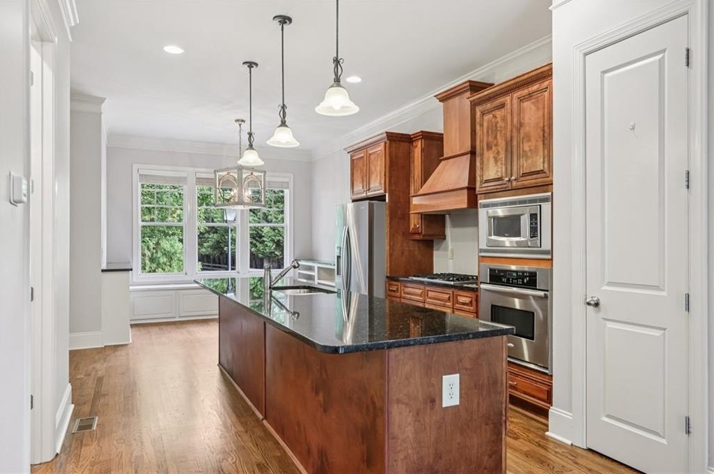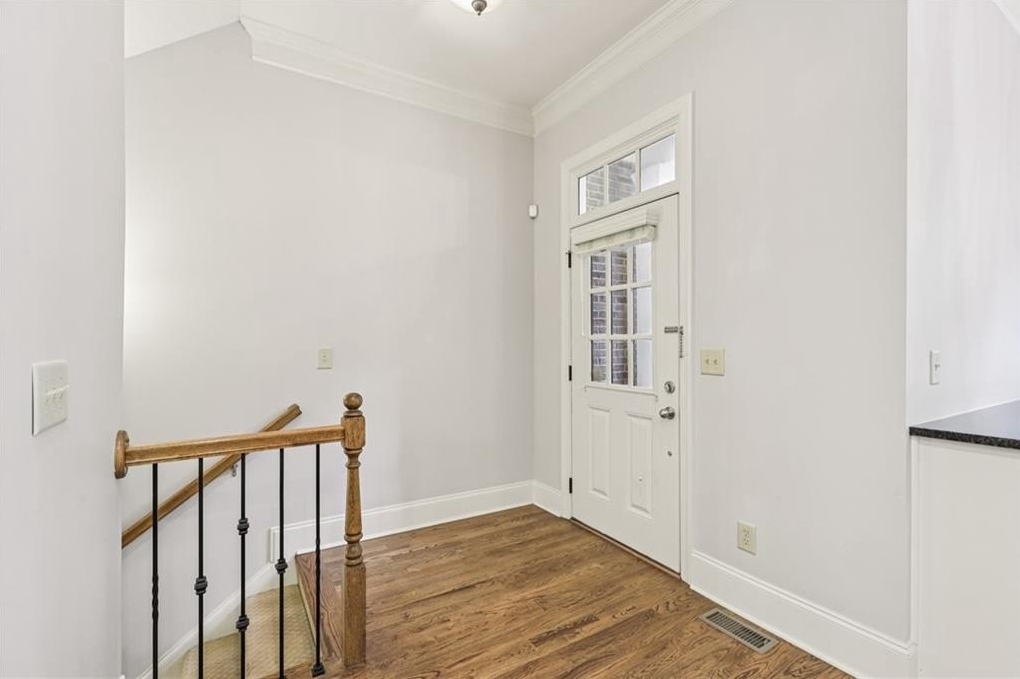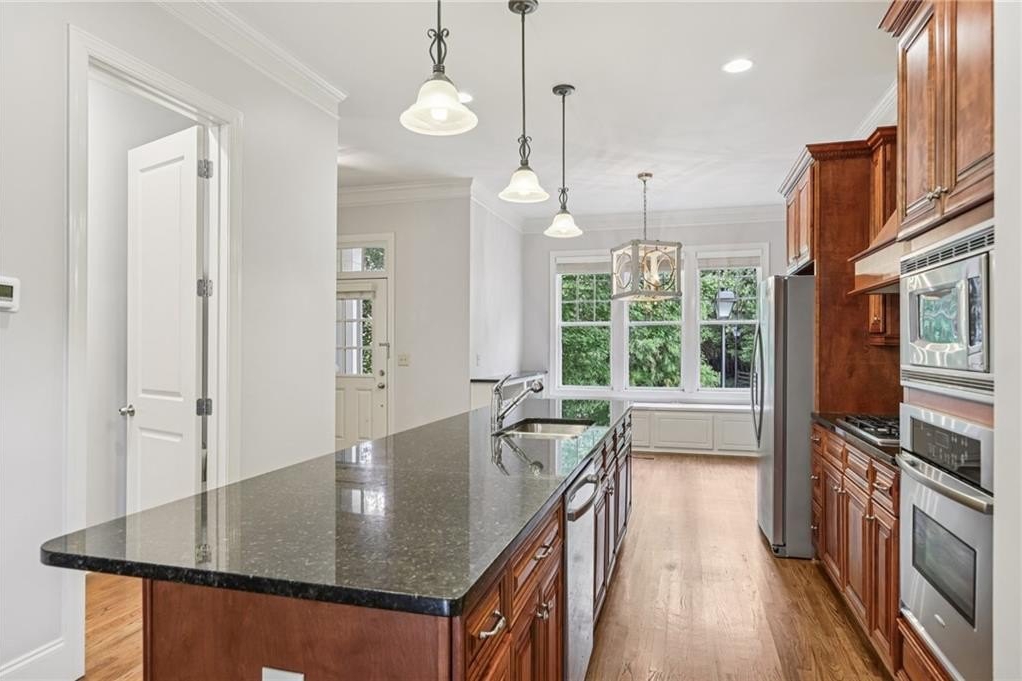 Ready-to-Move-In Corner Unit Townhome with Modern Comforts & Stylish Details! Step into this bright and open townhome featuring gorgeous wood floors throughout the main floor and elegant crown molding. The inviting front dining room includes built-in cabinetry and a cozy window seat—perfect for entertaining. The spacious living room offers a fireplace and direct access to a private back balcony, ideal for relaxing or hosting guests. The gourmet kitchen features granite countertops, a large island with seating, stainless steel appliances including a new fridge, and a gas cooktop. Enjoy casual meals in the cheerful breakfast room filled with natural light. Upstairs, retreat to the oversized primary suite complete with an en-suite bath featuring dual vanities, a soaking tub, and a separate fully tiled shower. A second upstairs bedroom also includes its own private en-suite bath. The first-floor bedroom with en-suite bath makes a perfect guest suite or home office. Don’t miss the upstairs deck offering extra outdoor space and privacy! Community amenities include a refreshing pool. Conveniently located near shopping, dining, and with easy highway access—this home has it all!