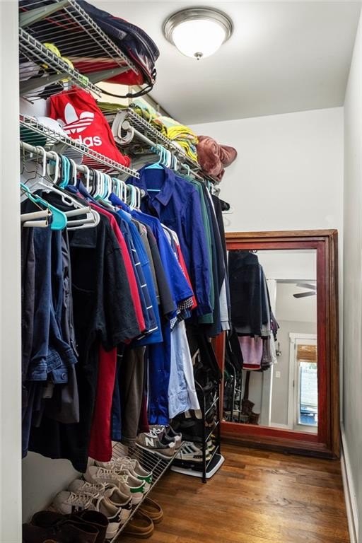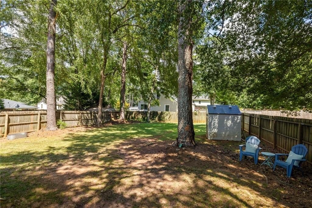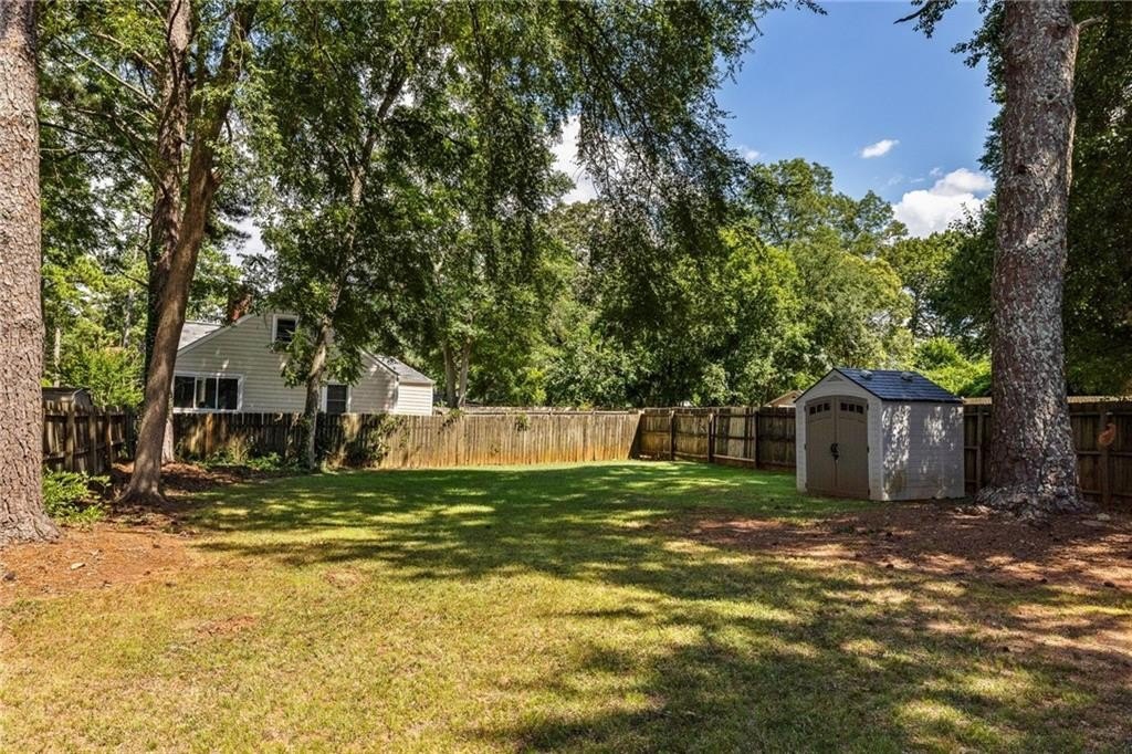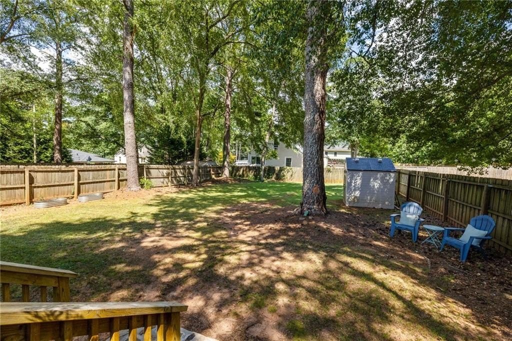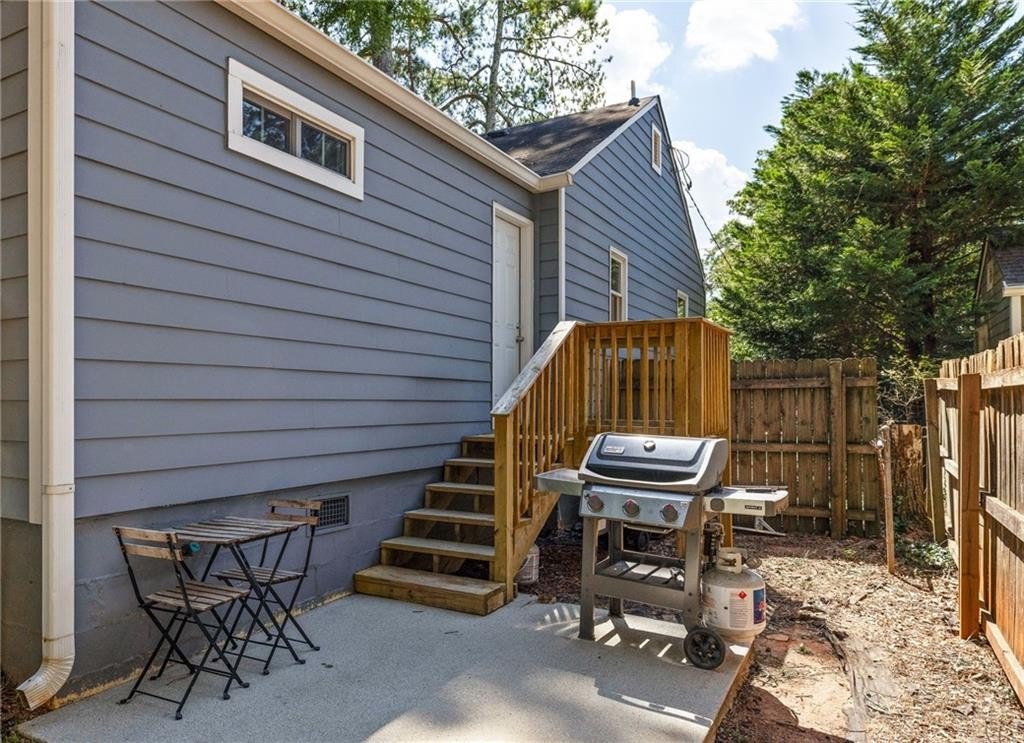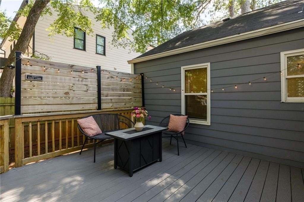 Get swept away by the dreamy primary suite with oversized walk-in closet and primary bathroom with huge shower and extra long double vanity with granite countertop. Primary suite opens directly onto a private deck with views of the deep rear yard. You'll feel miles away from the city with your own private oasis of a rear yard! Enjoy the shade from the Atlanta tree canopy and step into your flat yard--ready for outdoor morning yoga or fun yard games with friends. Host magical outdoor parties under the festive string lights.
