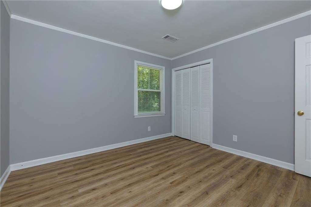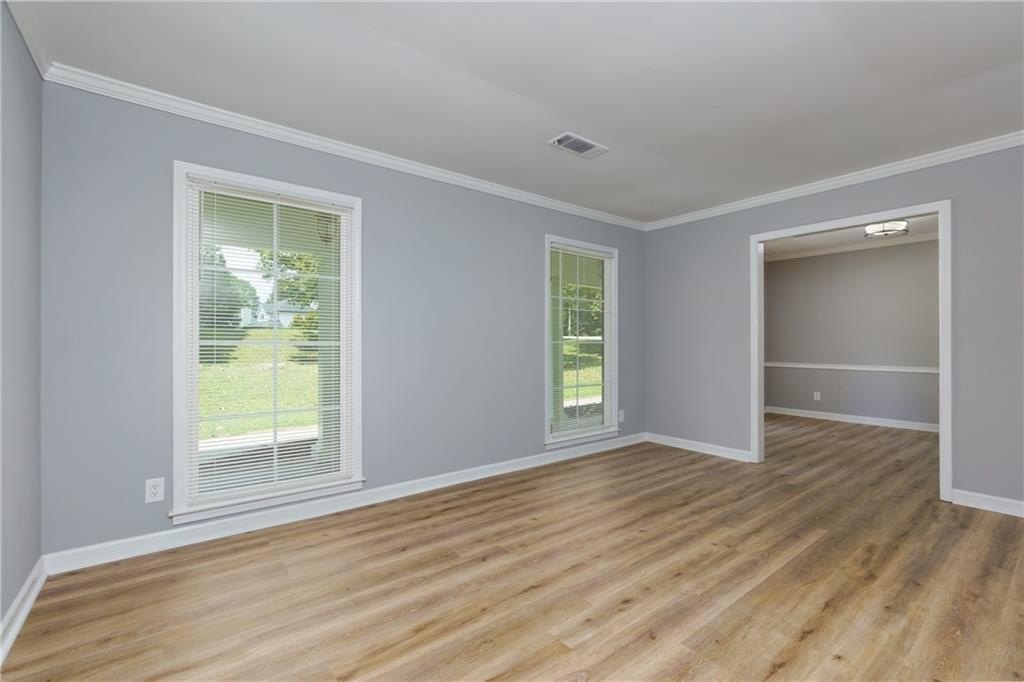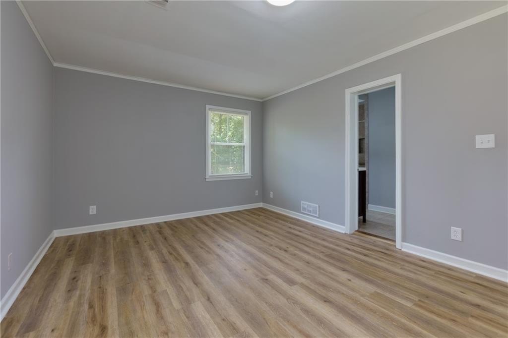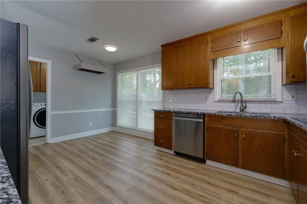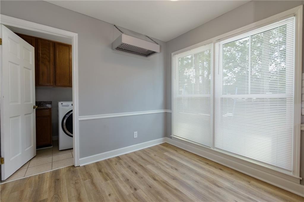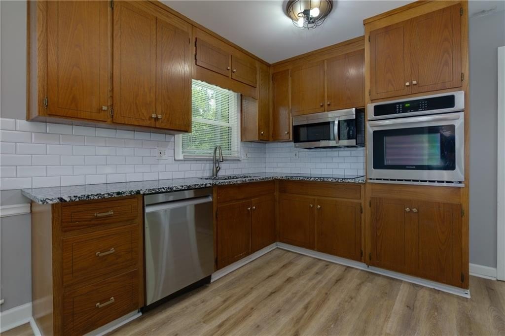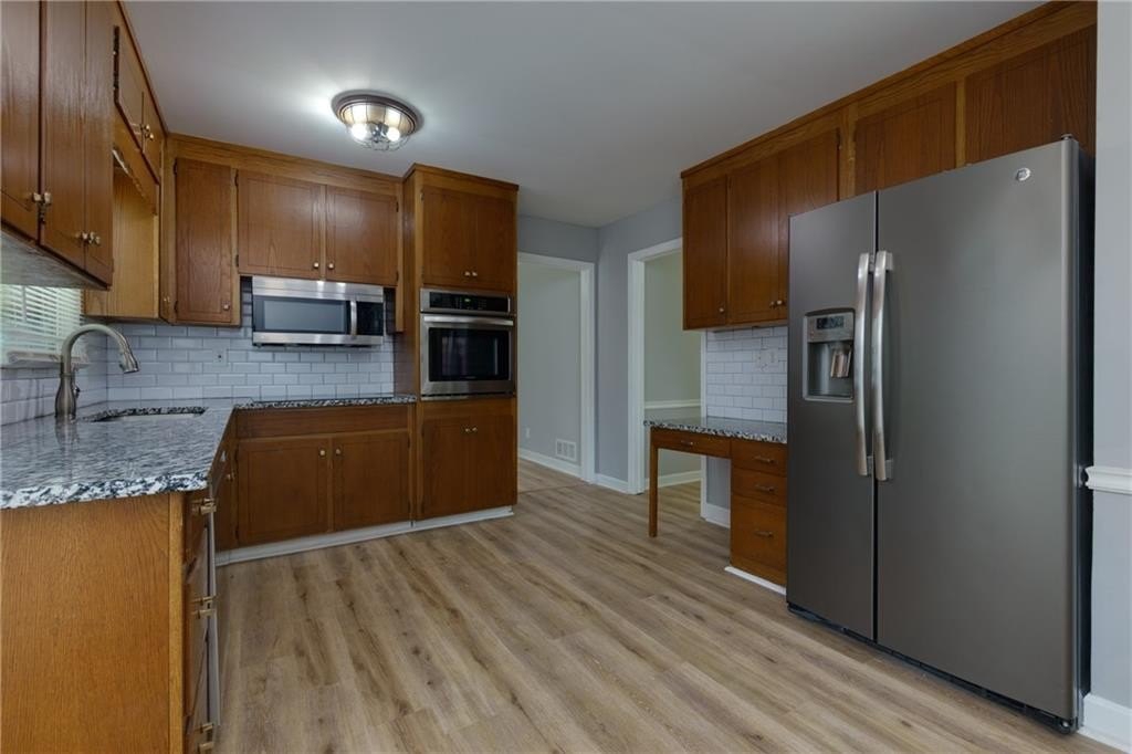 Looking for a charming ranch in the heart of Marietta with NO HOA and completely updated? Look no more! This classic one level home features 4 bedrooms and 2 full bathrooms. Enter the home into a foyer to be greeted with loads of natural light, updated flooring, and neutral paint throughout with a spacious floor plan. Just off the foyer you will enjoy a large den perfect for entertaining or unwinding, as it it attached to the formal dining room. This den space could easily be converted into a flex space for a home office, playroom, or study. The dining room is spacious, has updated lighting, and joins the kitchen for your convenience. The kitchen offers wood cabinets, granite countertops, white tile backsplash, and updated stainless steel appliances. There is also a casual dining space in the kitchen with a great view into the backyard. Continue on to the primary suite where you will enjoy a generous sized bedroom complete with closet and en suite bath. The master bath offers a beautiful walk in tile shower, updated vanity & mirror, and new fixtures. The additional 3 bedrooms are also spacious and share the second full bath with shower-tub combo, updated fixtures, and vanity. This home also offers a laundry room just off the kitchen with additional storage cabinets, counter space, and a brand new washer & dryer that are included with the home! Take in the outdoors with a sprawling lot featuring a back patio, fenced yard, and established shrubbery and trees. This home offers loads of curb appeal with a classic brick front, covered front porch, a large front yard, and easy to maintain landscaping. A brand new driveway leads to the side entry, two car garage where you will find additional storage space within. There is also a shed in the backyard for additional outdoor storage. Updates Include: New HVAC, new washer & dryer, updated appliances, new outlets, new fixtures, new driveway, and a complete renovation that includes new flooring and paint, professionally installed new insulation throughout, and brand new windows throughout making this property highly energy efficient and helping to reduce those utility bills in both Summer and Winter. This home truly offers it all in a highly sought after area of East Cobb with easy access to local shops, restaurants, top rated schools including Pope High School (rated 9/10), and easy commutes! Area highlights include fantastic local parks and community areas such as Marietta Square, The Atlanta Braves Battery, and more.