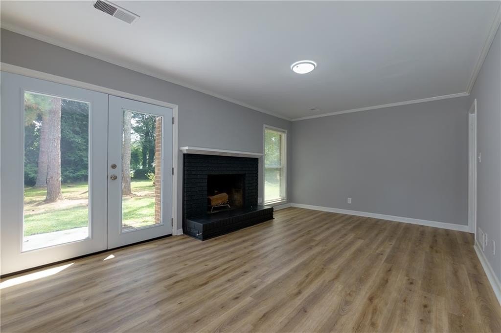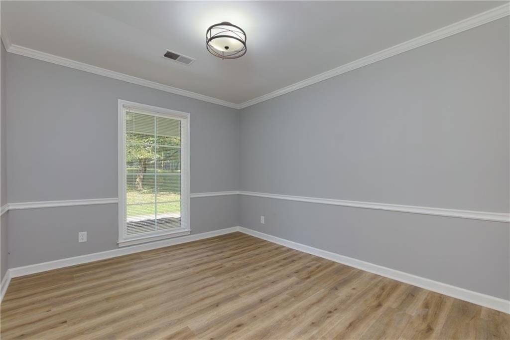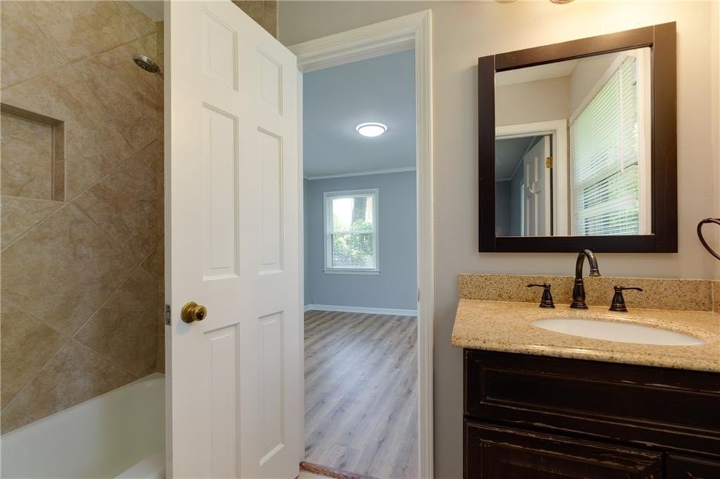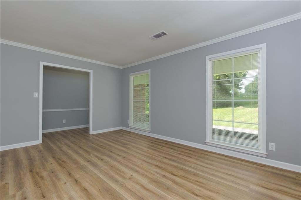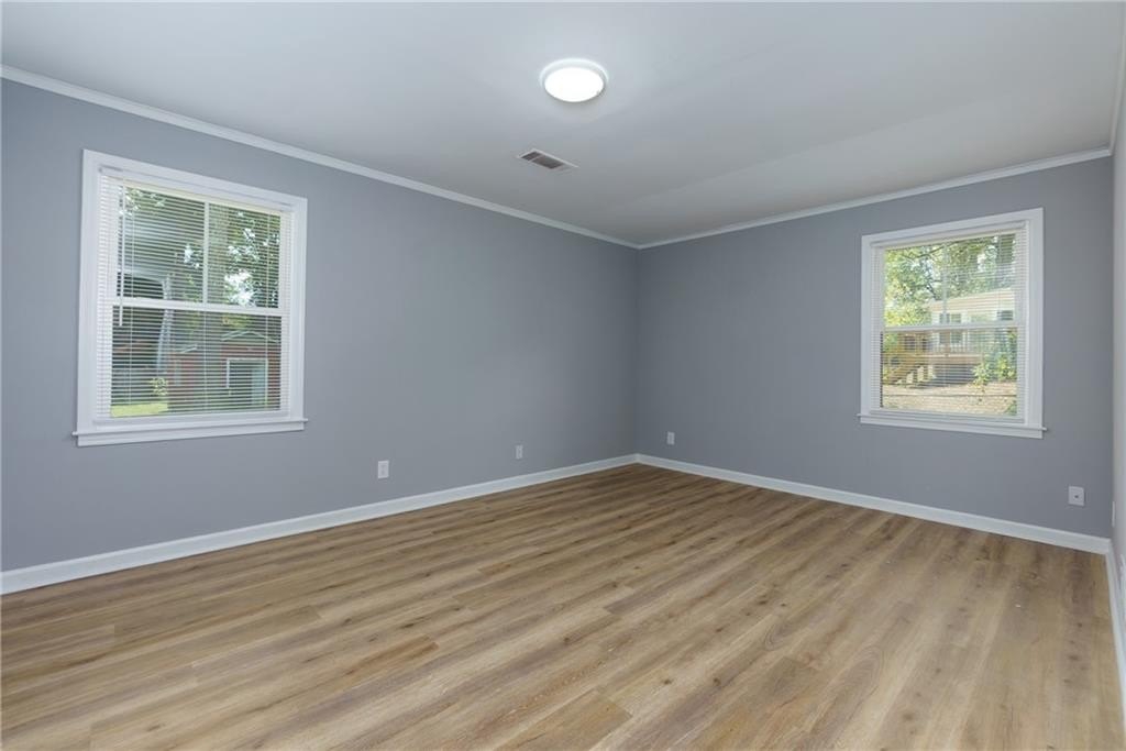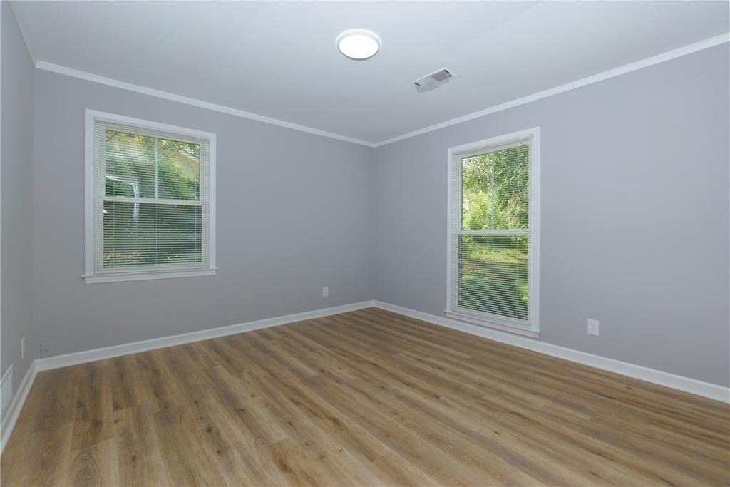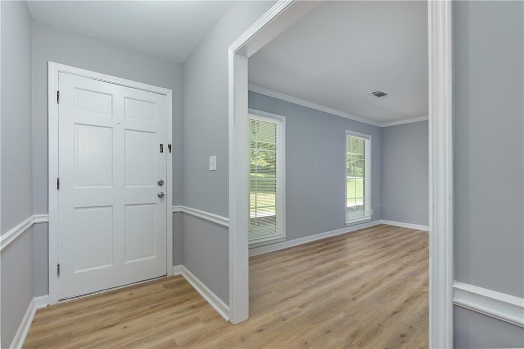 Looking for a charming ranch in the heart of Marietta with NO HOA and completely updated? Look no more! This classic one level home features 4 bedrooms and 2 full bathrooms. Enter the home into a foyer to be greeted with loads of natural light, updated flooring, and neutral paint throughout with a spacious floor plan. Just off the foyer you will enjoy a large den perfect for entertaining or unwinding, as it it attached to the formal dining room. This den space could easily be converted into a flex space for a home office, playroom, or study. The dining room is spacious, has updated lighting, and joins the kitchen for your convenience. The kitchen offers wood cabinets, granite countertops, white tile backsplash, and updated stainless steel appliances. There is also a casual dining space in the kitchen with a great view into the backyard. Continue on to the primary suite where you will enjoy a generous sized bedroom complete with closet and en suite bath. The master bath offers a beautiful walk in tile shower, updated vanity & mirror, and new fixtures. The additional 3 bedrooms are also spacious and share the second full bath with shower-tub combo, updated fixtures, and vanity. This home also offers a laundry room just off the kitchen with additional storage cabinets, counter space, and a brand new washer & dryer that are included with the home! Take in the outdoors with a sprawling lot featuring a back patio, fenced yard, and established shrubbery and trees. This home offers loads of curb appeal with a classic brick front, covered front porch, a large front yard, and easy to maintain landscaping. A brand new driveway leads to the side entry, two car garage where you will find additional storage space within. There is also a shed in the backyard for additional outdoor storage. Updates Include: New HVAC, new washer & dryer, updated appliances, new outlets, new fixtures, new driveway, and a complete renovation that includes new flooring and paint, professionally installed new insulation throughout, and brand new windows throughout making this property highly energy efficient and helping to reduce those utility bills in both Summer and Winter. This home truly offers it all in a highly sought after area of East Cobb with easy access to local shops, restaurants, top rated schools including Pope High School (rated 9/10), and easy commutes! Area highlights include fantastic local parks and community areas such as Marietta Square, The Atlanta Braves Battery, and more.