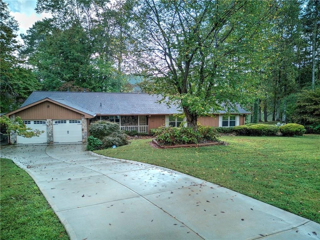 This impeccably maintained 3 bedroom, 2 bath mid-century modern ranch offers the perfect blend of character, comfort, and lakefront living. Nestled in the sought-after Lake Forest community of Acworth, this home boasts sweeping views of the water and a private retreat feel, all while being close to conveniences.